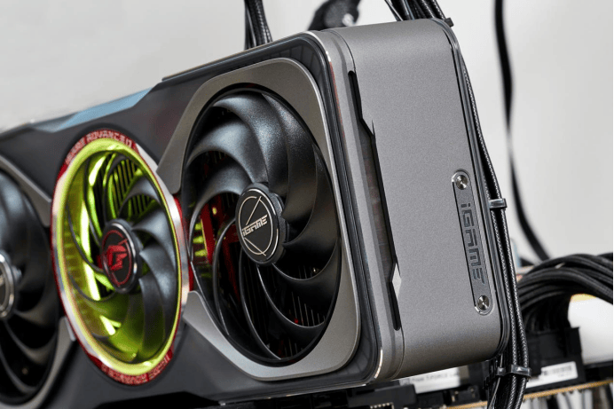 此外,背板上还巧妙地隐藏了 iGame 的 LOGO,在特定的视角下可一窥其貌,进一步提升了设计的精致感。
