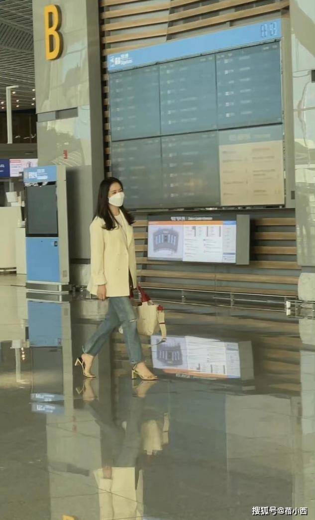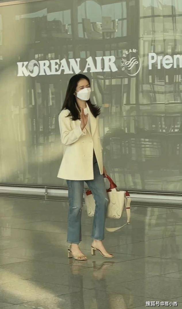 — 孙艺珍夫妇现机场,她穿西装+牛仔裤遮不住幸福肥,老公身材很壮 —