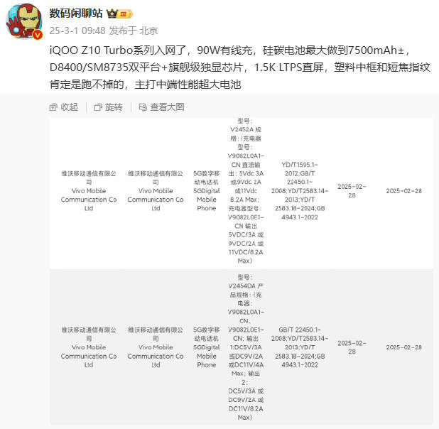 — iQOO Z10系列部分参数曝光,iQOO Z10 Turbo系列大电池锁定中端市场! —