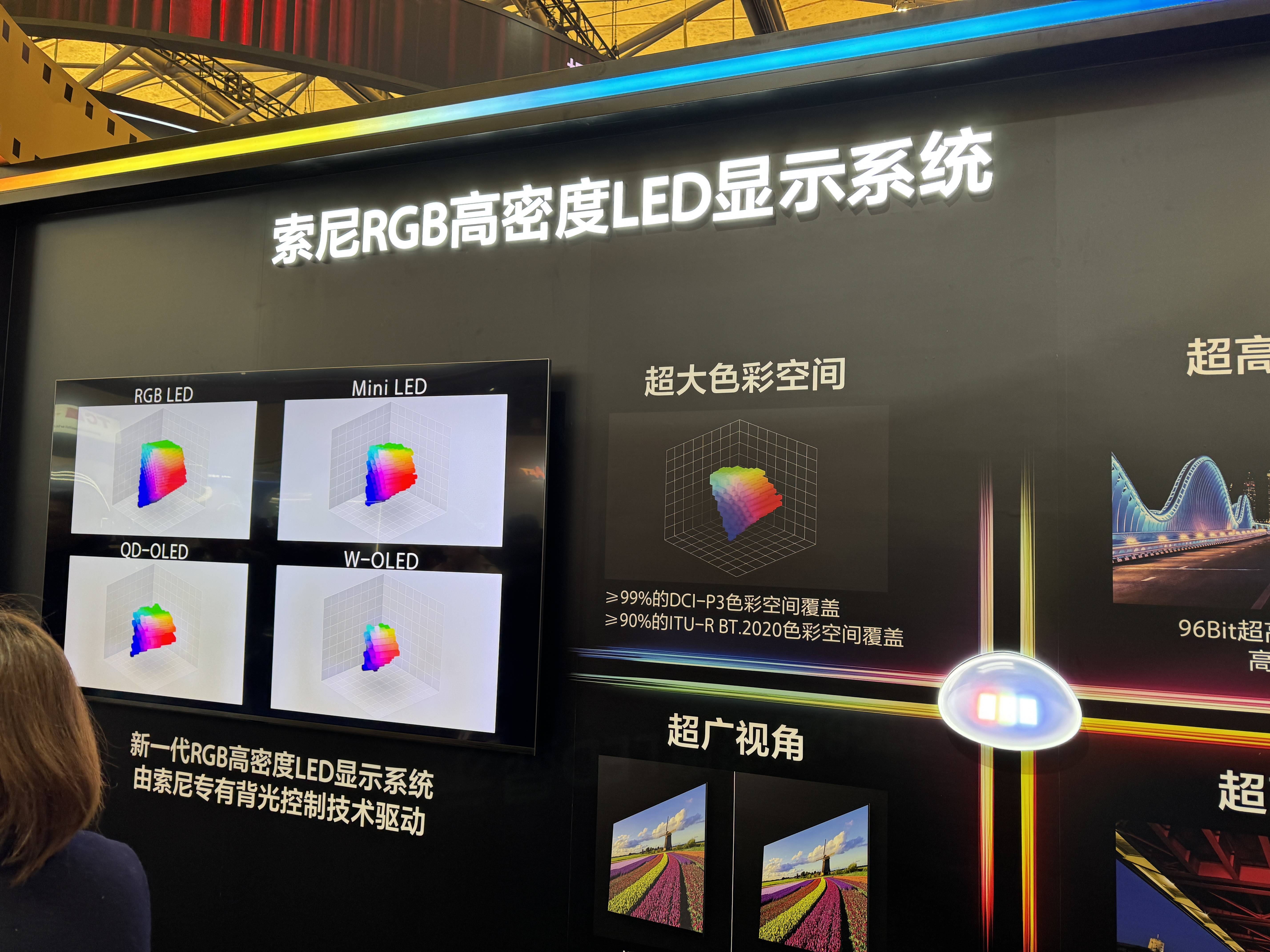我们其实很期待索尼能在自己的展区带来一些新的信息和产品,但很可惜索尼展台上都是我们已知的产品和技术。我们都知道索尼前些天已经在东京发布和展示了RGB Mini LED电视的技术,所以其实也很希望能在国内看到实际的画面。索尼倒是有一个展区介绍自己的RGB Mini LED电视技术,但并没有实际画面演示,只是一个宣传视频。