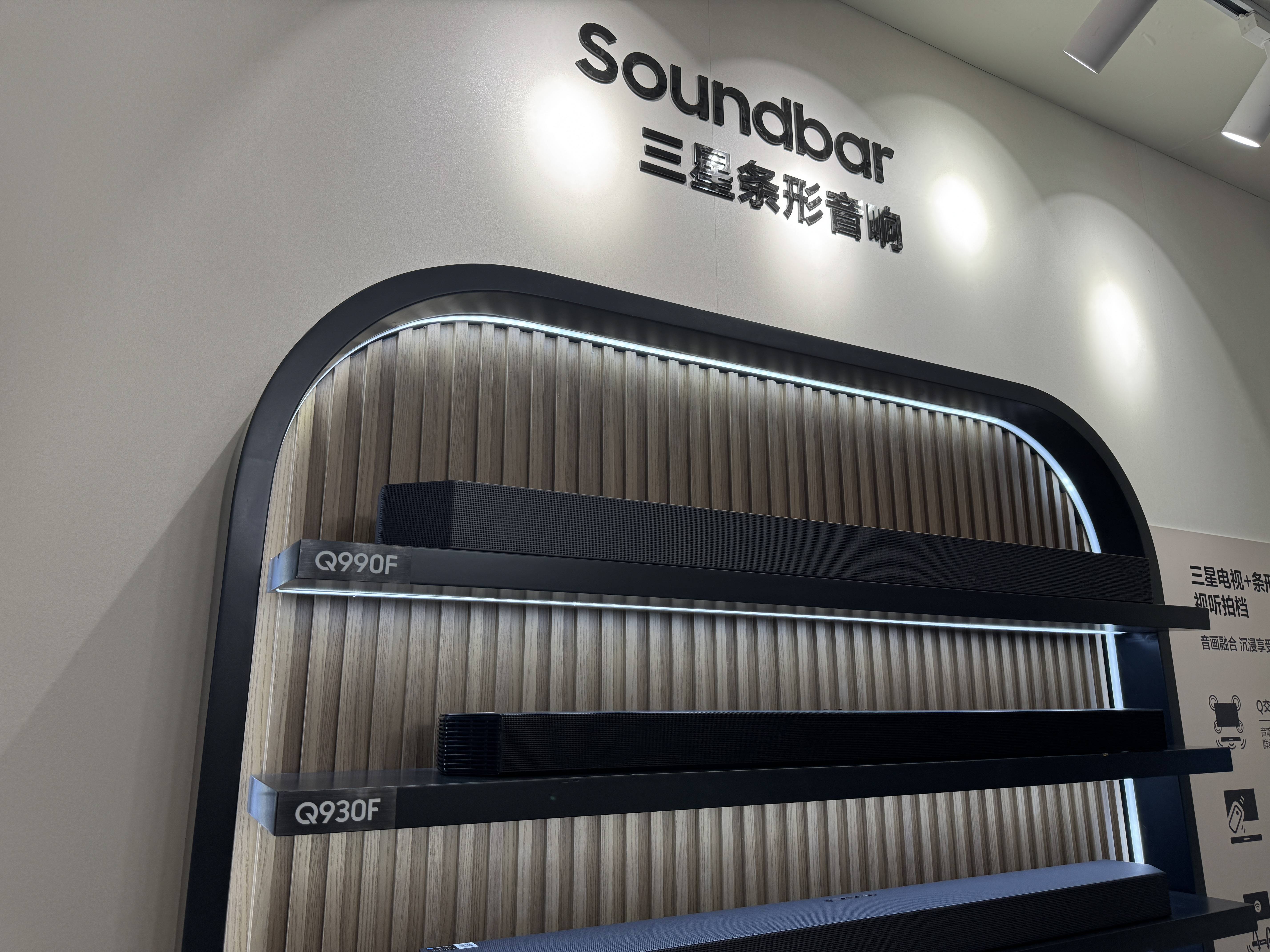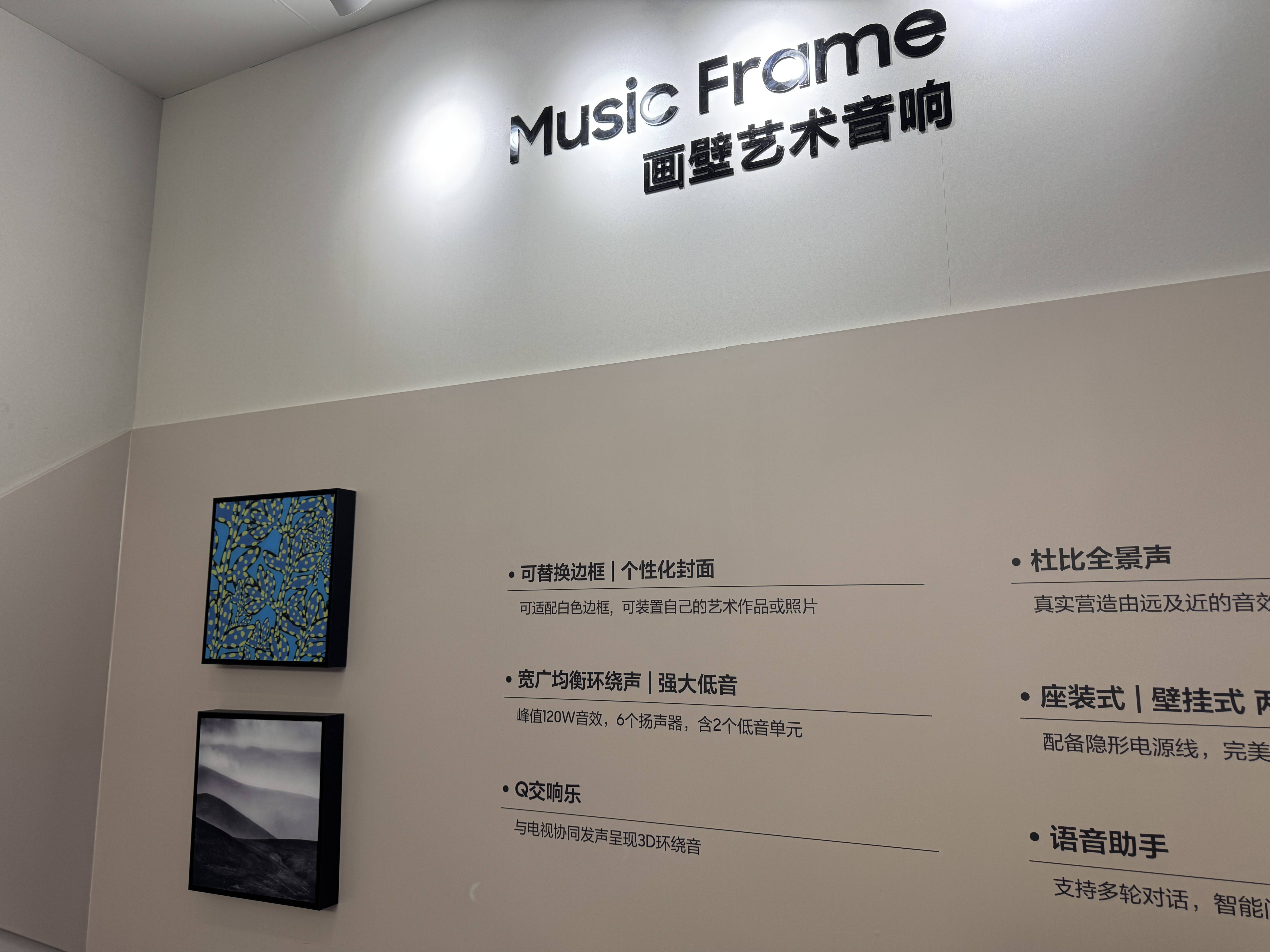 三星的回音壁和艺术电视,我们觉得比OLED电视带来的惊喜会更多一些。现场三星依然有展出今年回音壁的产品,包括高中低不同定位的产品。最高当然是Q990F,支持HDMI 2.1。其他包括Q930F、Q800F、QS700F和S800D等产品,从我们来说可能QS700F就能满足很多人的需求了。不过三星还弄了一个画壁艺术音响,搭配艺术电视,应该能在保持逼格的状态下,达到更好的音质效果。