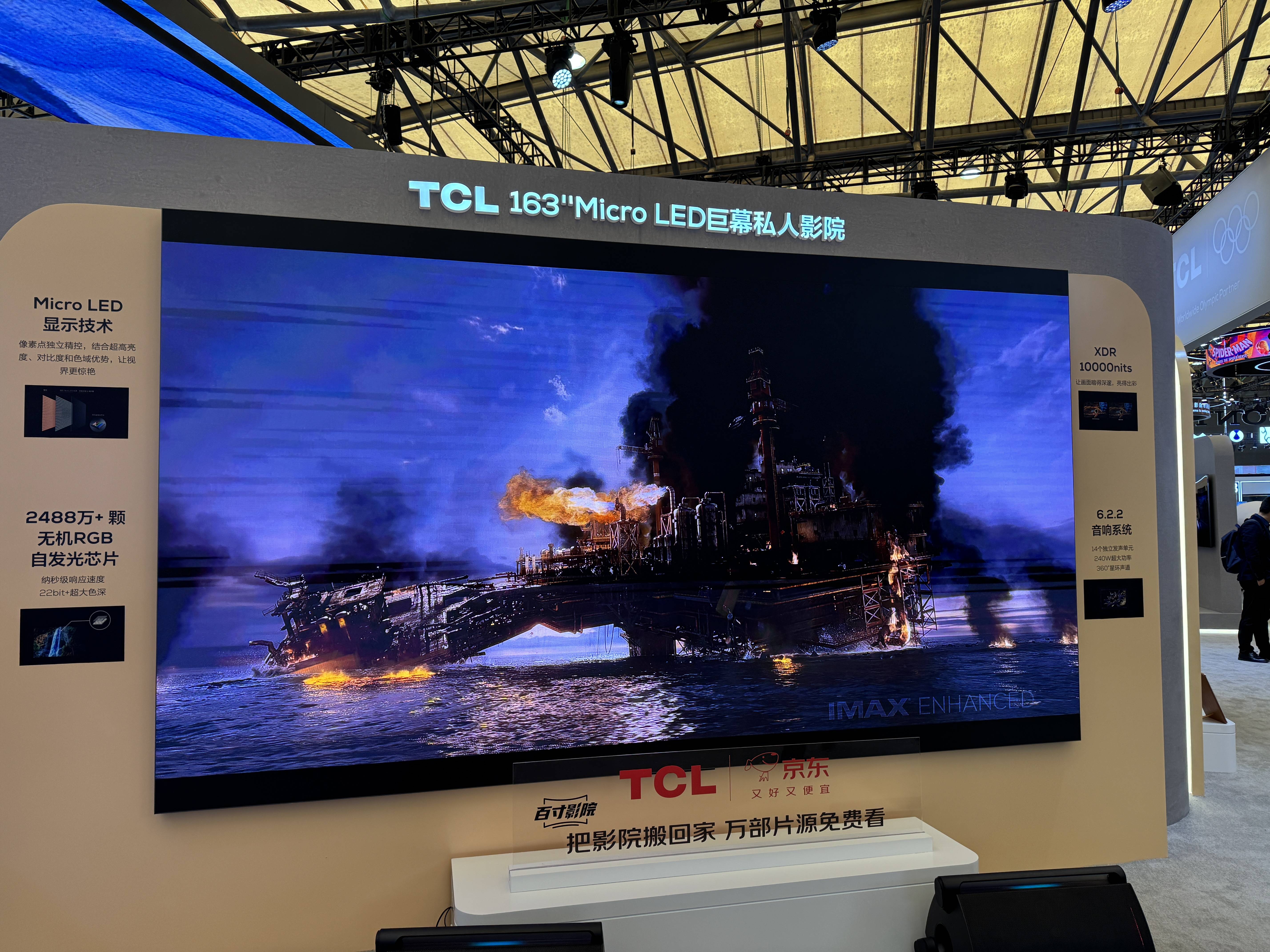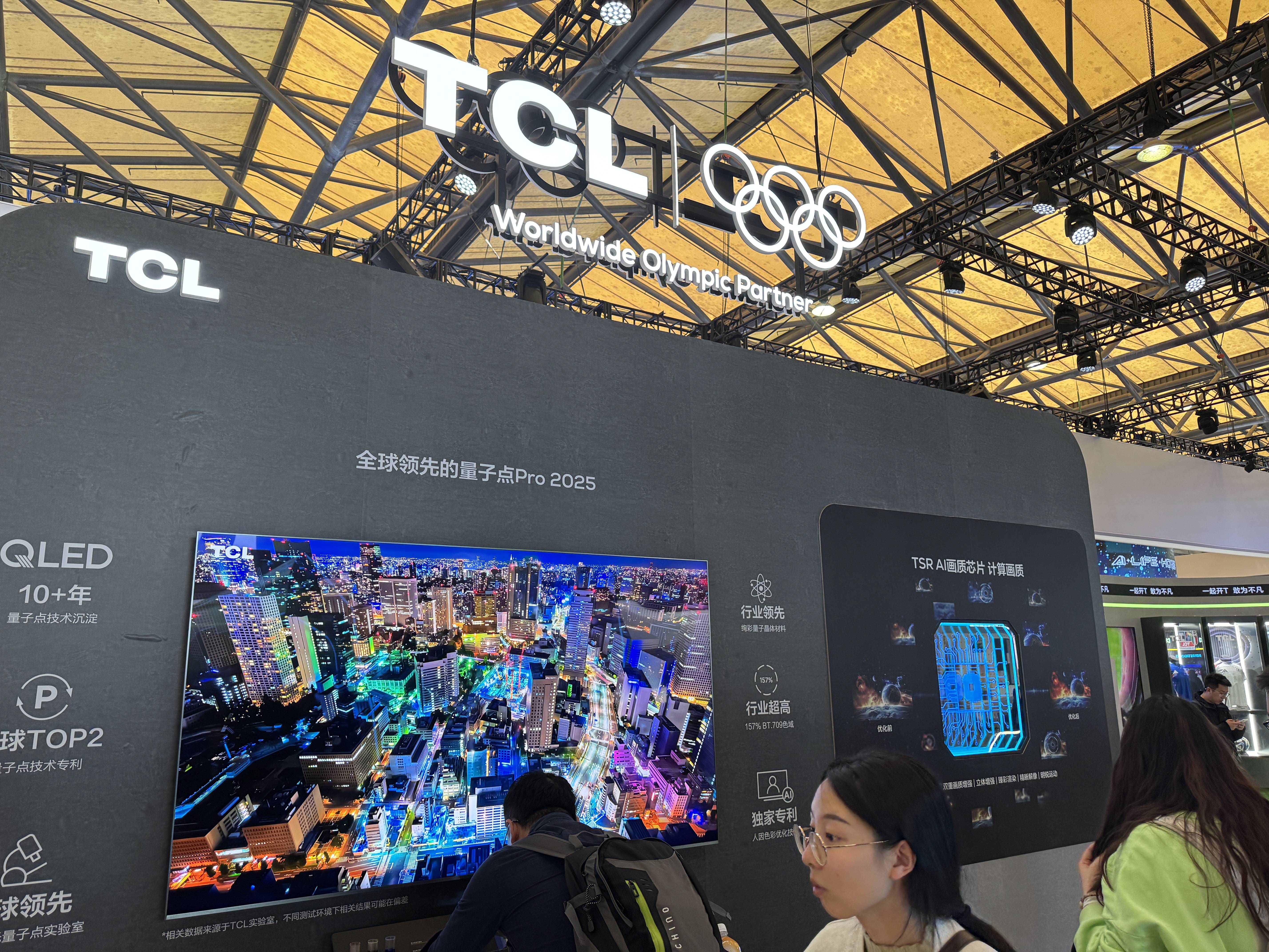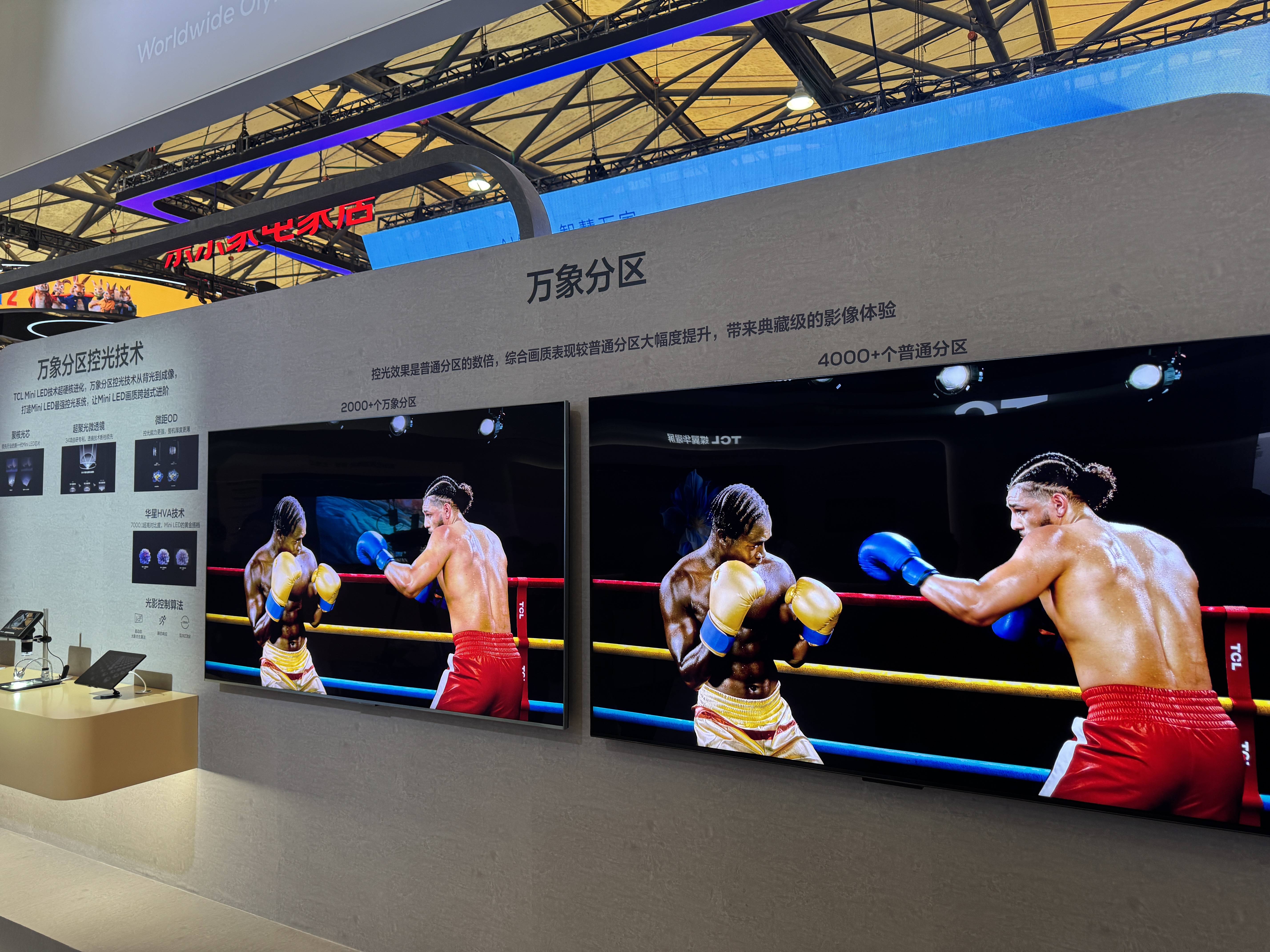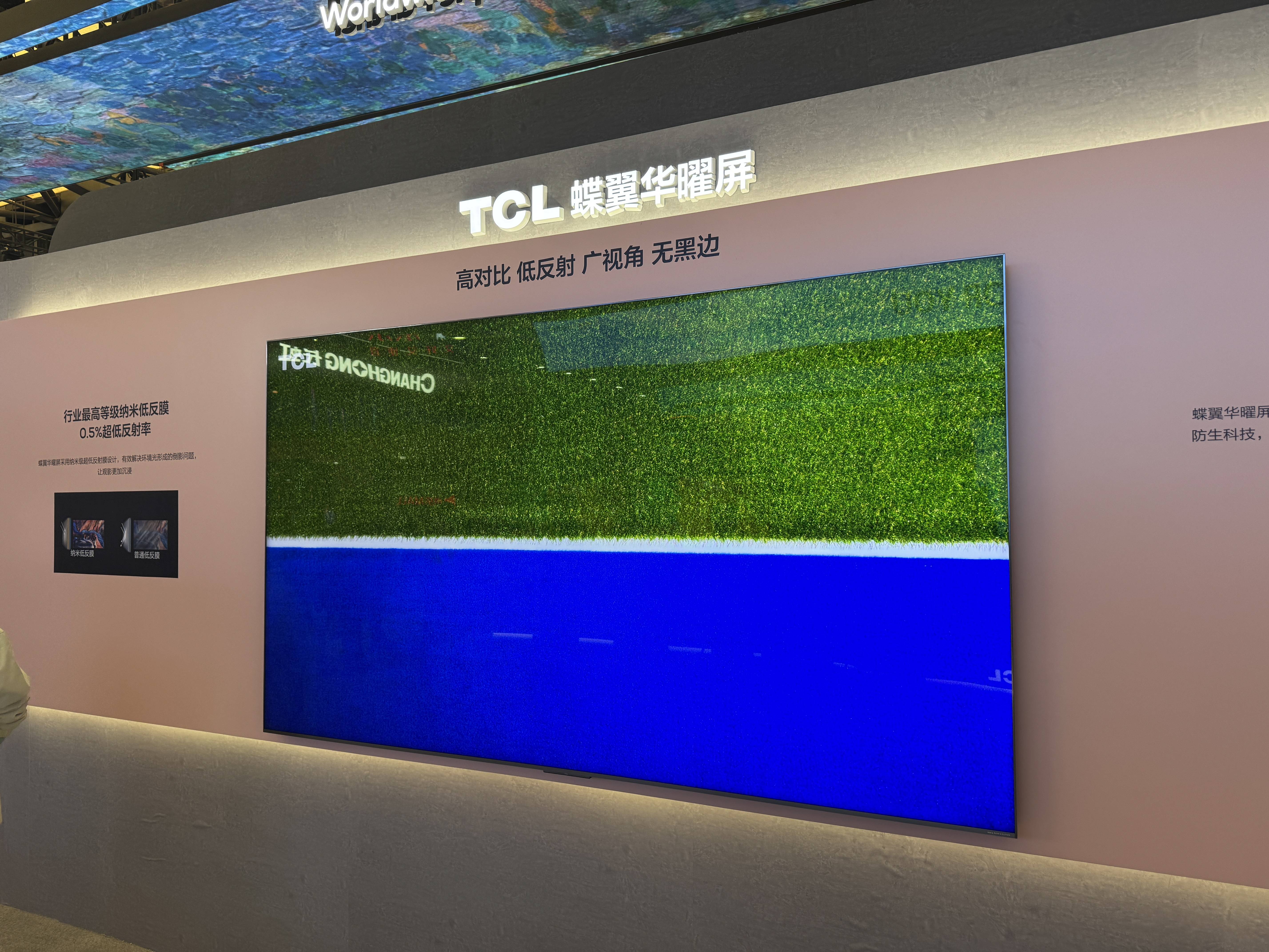 TCL自己其他电视部分,展出了之前的163英寸Micro LED电视以及115英寸的X11G Max,我们看到相比去年AWE时的效果,163英寸的X11H Max在画质上提升了不少,另外展区也有万象分区、TSR芯片、量子点2025、蝶翼华曜屏等技术的介绍。对于TCL来说,这次AWE不仅仅是向大家介绍自己一些具有代表性的电视产品,更多也是希望借AWE这个平台,向用户去推广自己在Mini LED电视方面的一些独有技术。