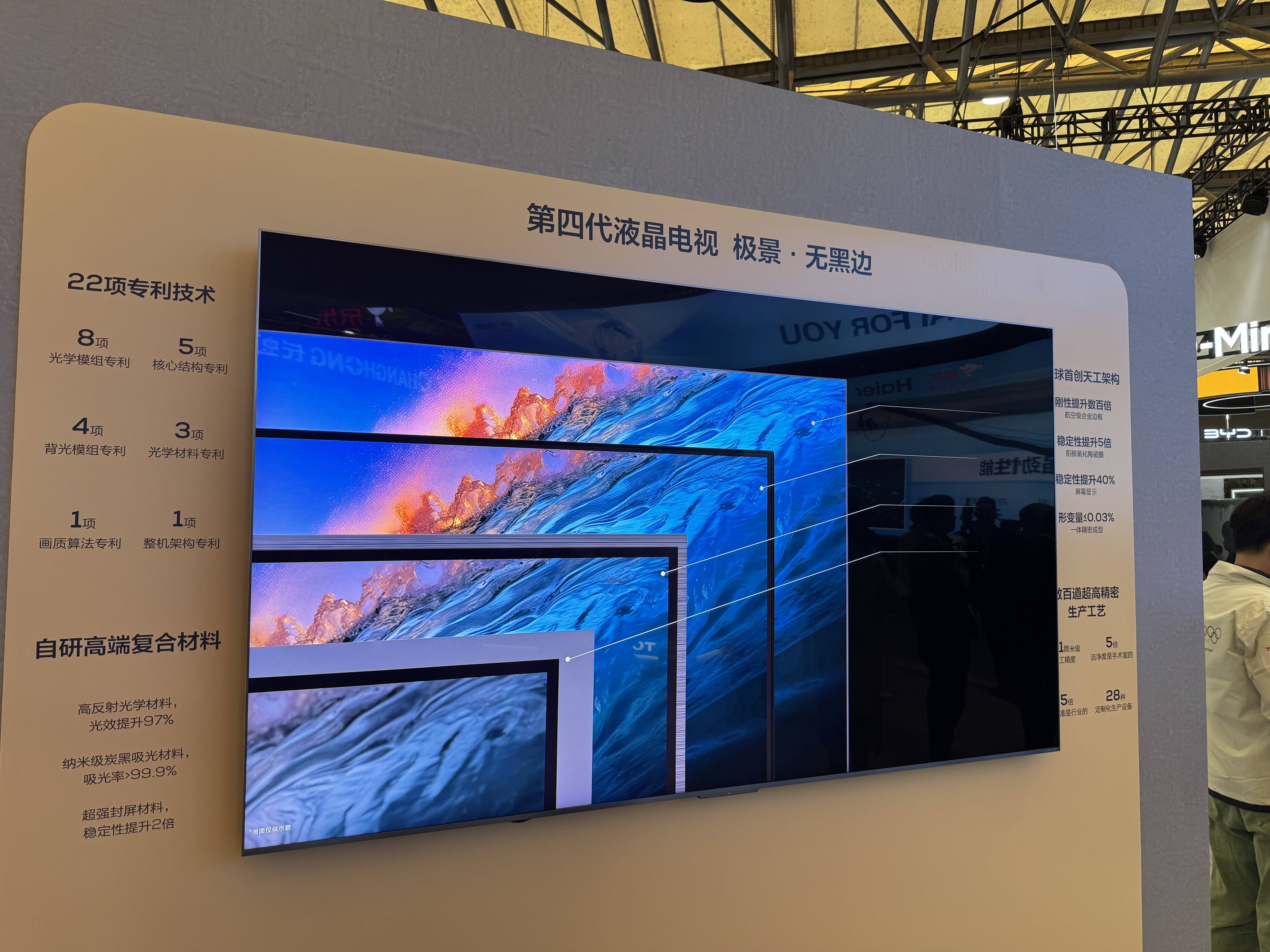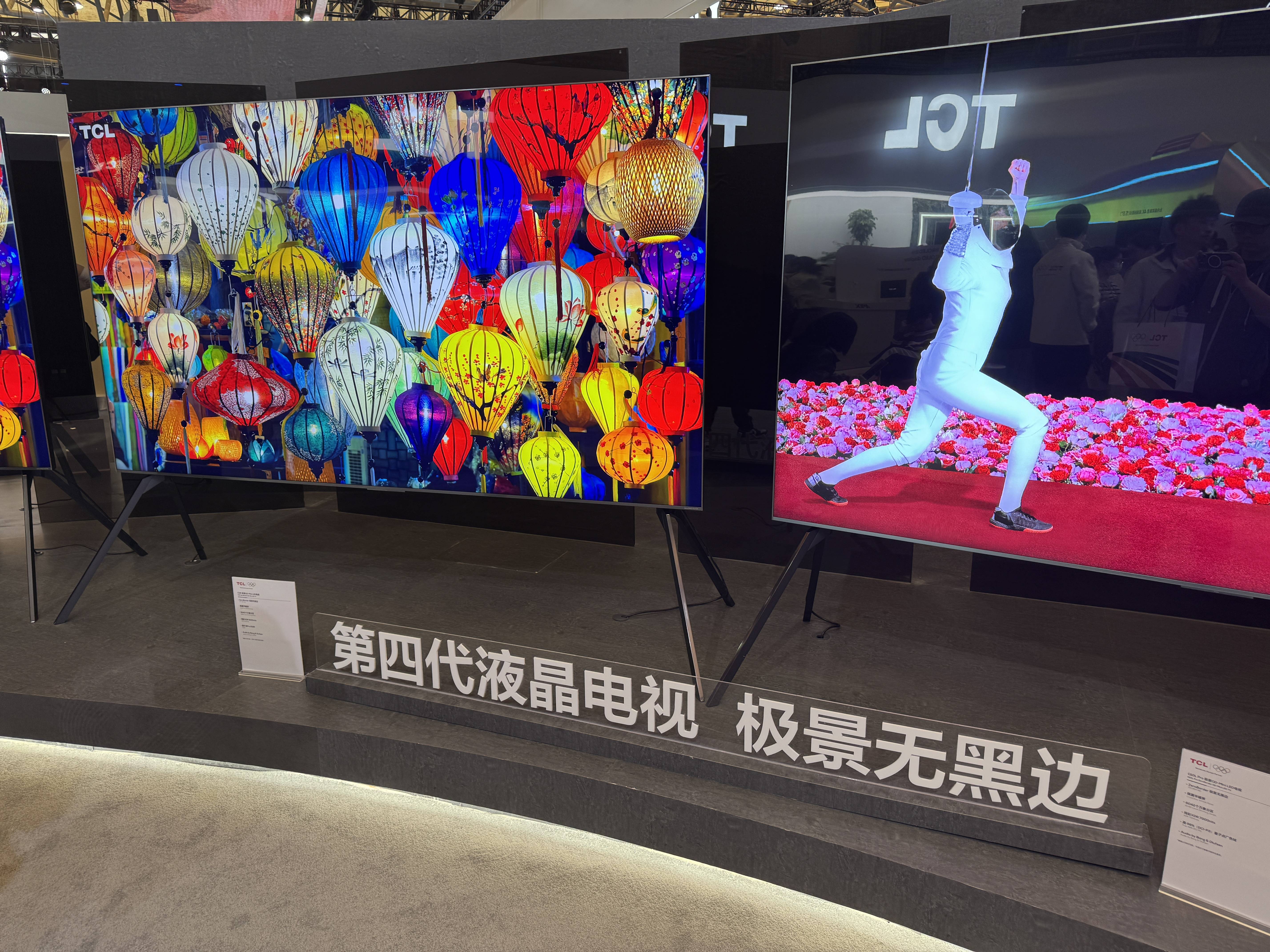 TCL的展区应该是整个AWE中面积最大的之一了,包括了电视、冰洗、面板、空调、显示器等各类产品,除了TCL自己之外,也有华星、雷鸟等品牌亮相。不过TCL这次展出的新品其实就Q10L、Q10L Pro和线下的C12K几款,主要还是向观众展示自己的第四代液晶电视在边框设计上的亮点。不过效果显然是很好的,TCL展台每天的人流量都非常大,而且窄边框和几乎无黑边的设计,的确吸引了大量观众的眼球,说TCL展出的无黑边电视是全场最靓的仔,并不算夸张。