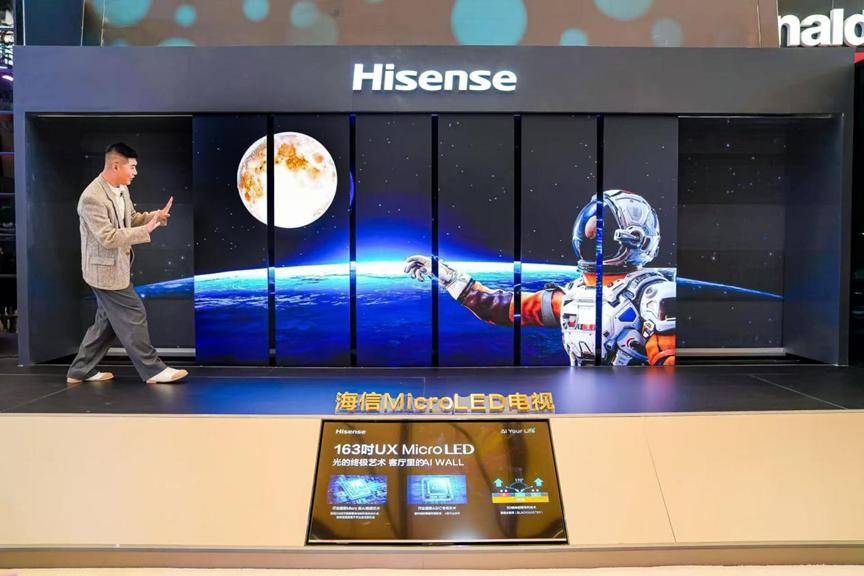 另一个让我们略感意外的是,现场海信还展出了自己的Micro LED电视,这也是我们第一次看到海信针对民用消费级市场推出自己的Micro LED电视。在第二天海信的“此刻是我”的发布会上,海信Micro LED电视也正式发布,这一电视品类依然属于UX系列,目前公开销售的有136英寸和163英寸两个版本,售价分别是499999元和799999元。