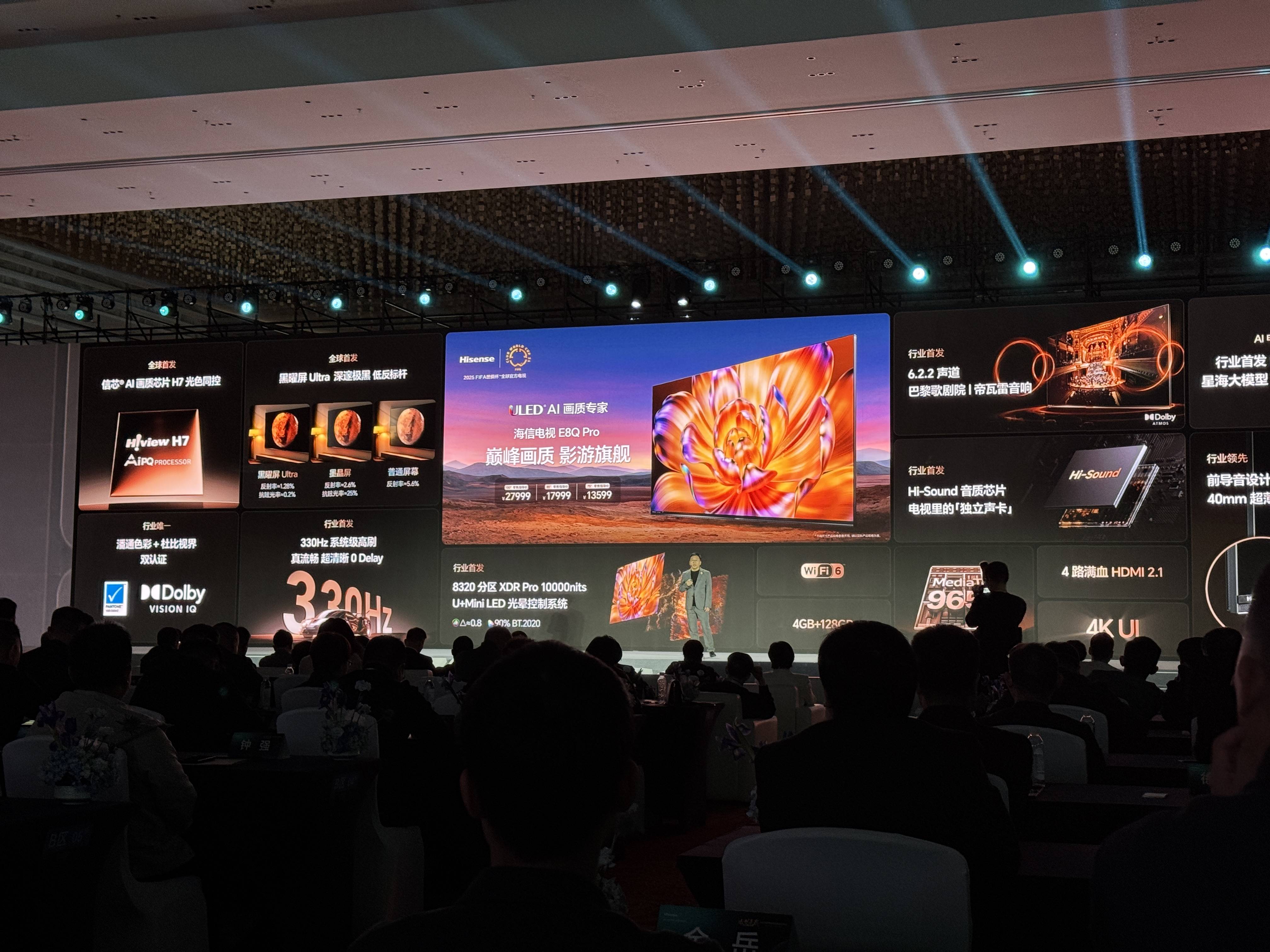 在现场除了RGB Mini LED电视和Micro LED电视之外,海信还展出了E8Q Pro和U7Q这两款电视产品,同时也都在第二天正式发布并且公布了价格。E8Q Pro和U7Q我们之前都在海信的研发基地上看到,同时像高端的E8Q Pro我们也已经介绍过,这里就不再过多赘言。这次海信发布的全部是高端旗舰重磅产品,并且涉及到线上线下的型号,而且无论是RGB Mini LED电视还是Micro LED电视的效果都非常惊人,剩下的就交给用户和市场吧!