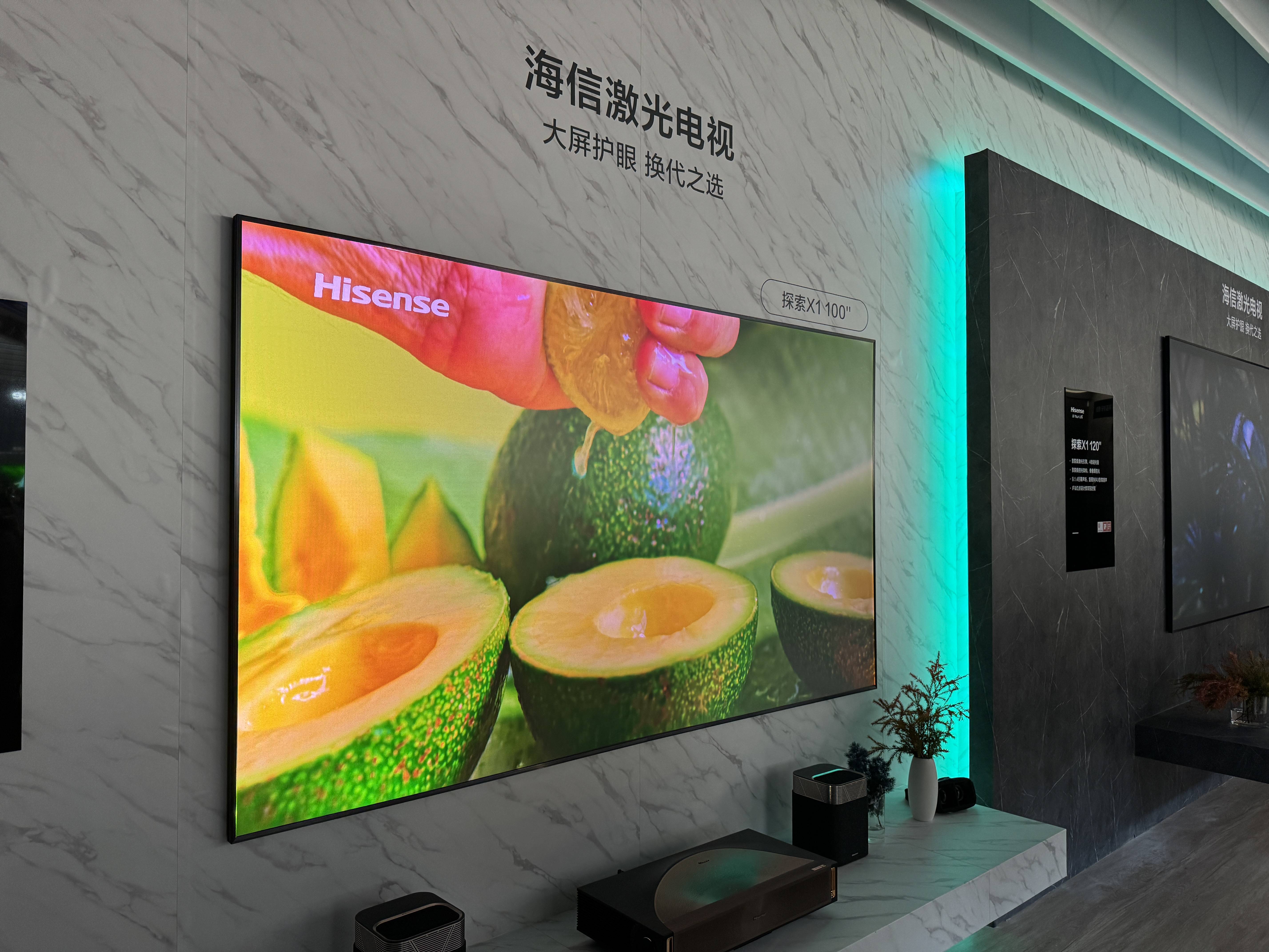 这次AWE大展上,海信还带来了自己新一代的旗舰激光电视X1,这也是我们个人非常喜欢的一款产品,我们之前见过原型机,也在实验室里里领略过它的效果,我们甚至认为这可能是目前最适合用来观看电影的设备之一,无论是画质还是音质,我们认为这都是激光电视诞生以来的一个新高度。如果说细节画质,激光电视显然还无法和Mini LED电视相比,但是要考虑到实际的音效、大屏沉浸感以及入户的设计,X1的优势又的确很明显,特别是最高全屏1000nits的亮度,加上未来可能通过杜比视界和杜比全景声的双认证,这几乎是一个没有短板的激光电视。在这个海信几乎算独自奔跑的赛道上,我们还能看到X1这样的产品,海信在激光电视领域的深耕可见一斑。