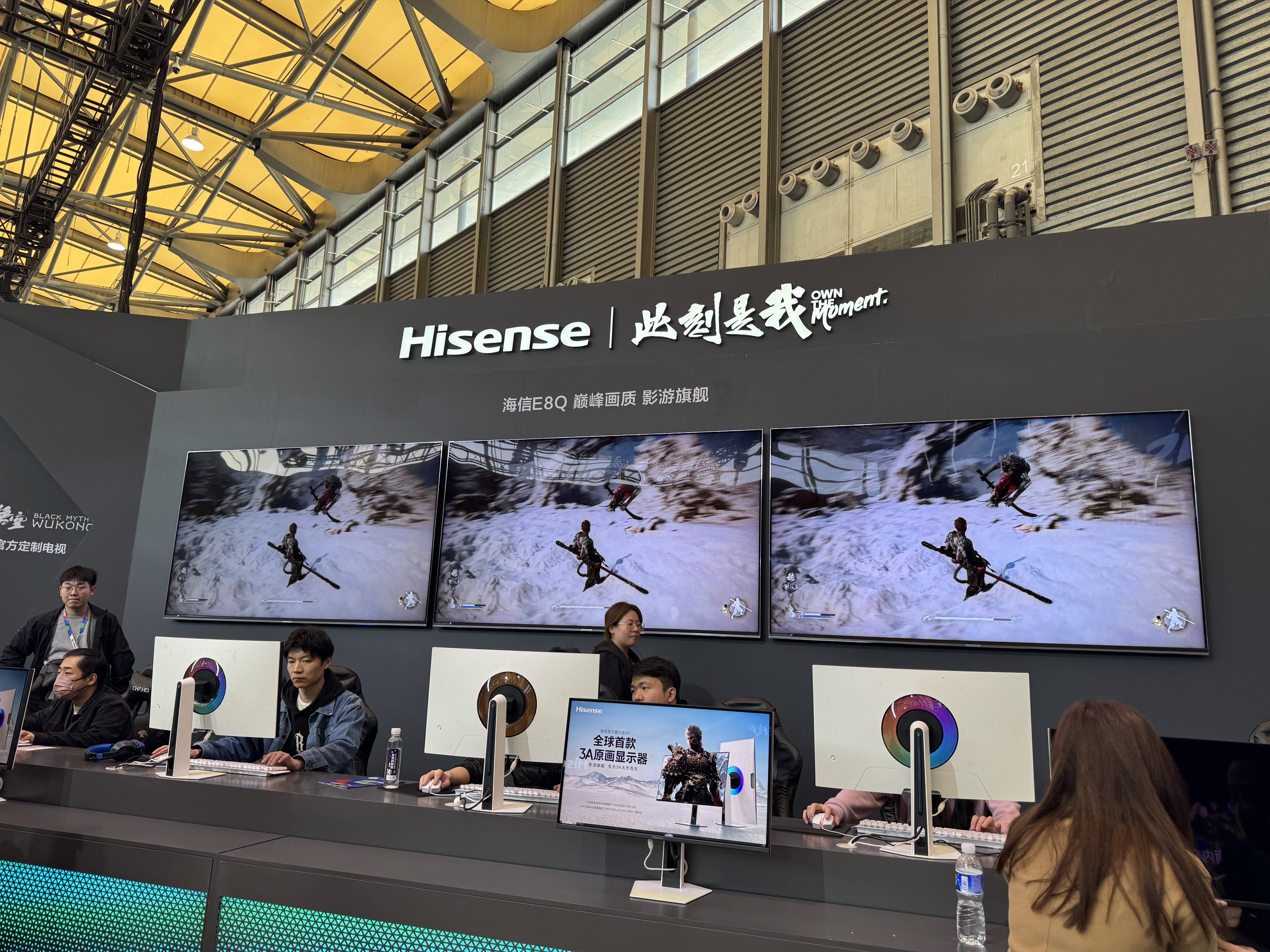 之前我们曾报道过的海信大圣G9 Mini LED显示器,这次也出现在AWE展会上,而且相比之前我们看到的效果,这次画面表现更为出色,显然这段时间也解决了一些问题,应该是很接近上市的状态了。我们知道这款产品会在四月上市,届时有机会我们也会进行测试。不过这的确是我们目前见到Mini LED显示器上,在各方面都比较出色的产品。
