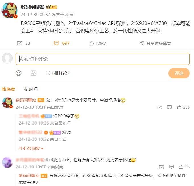 — 联发科天玑9500规格曝光:性能、能效大幅升级,给骁龙上压力了! —