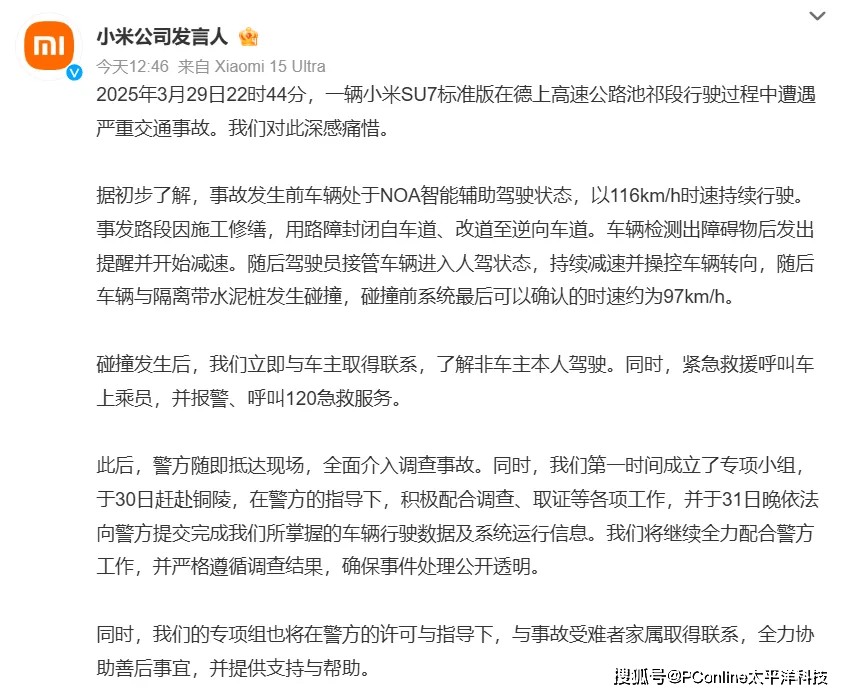 — 小米SU7碰撞起火致3人遇难,家属:2秒内反应不现实 —