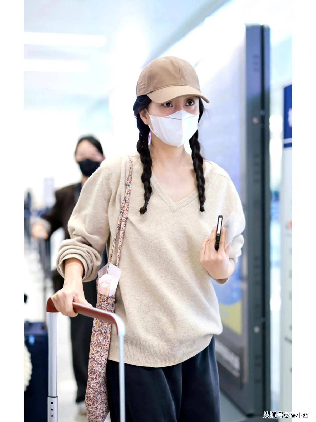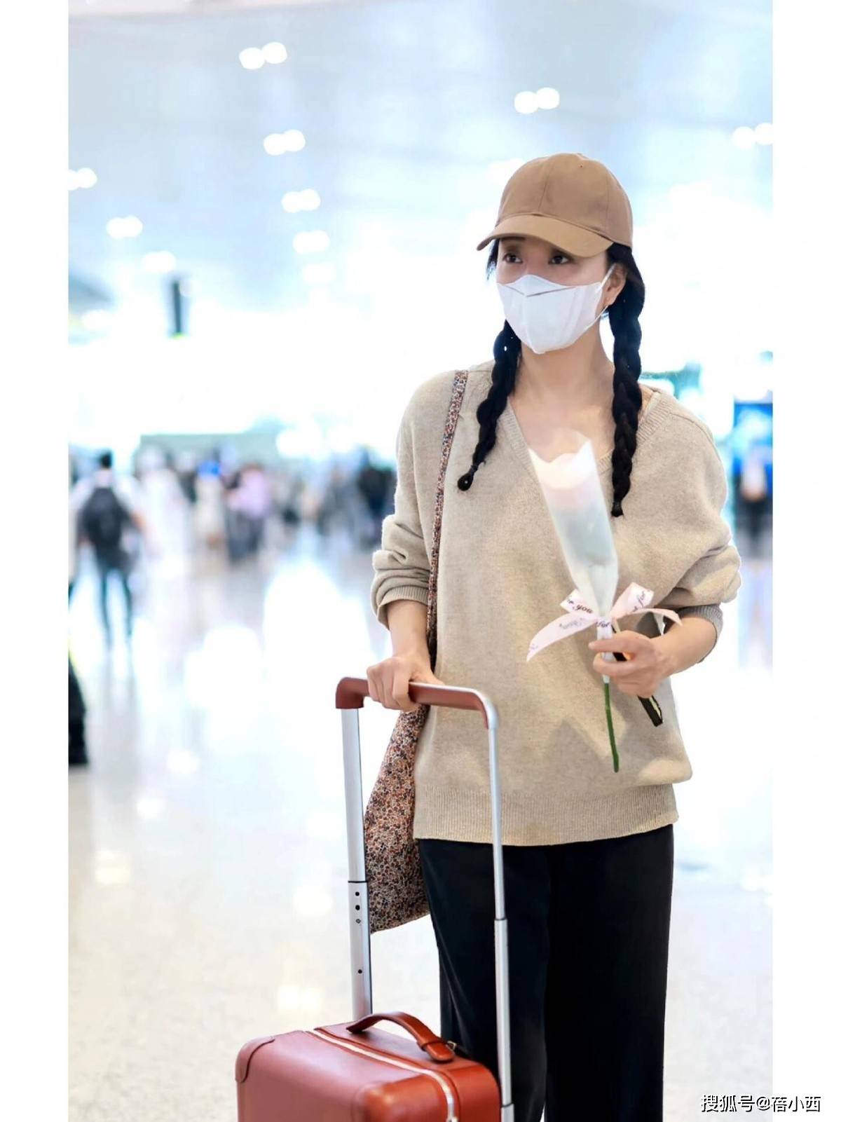 — 45岁殷桃又带火了极简穿搭:针织衫+小黑裤+帆布袋,高级又洋气 —