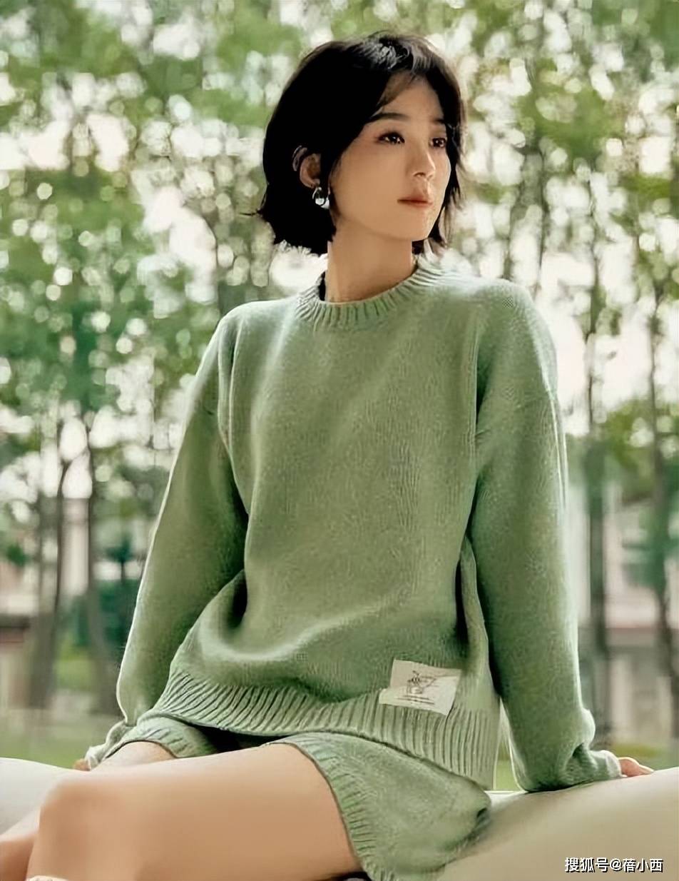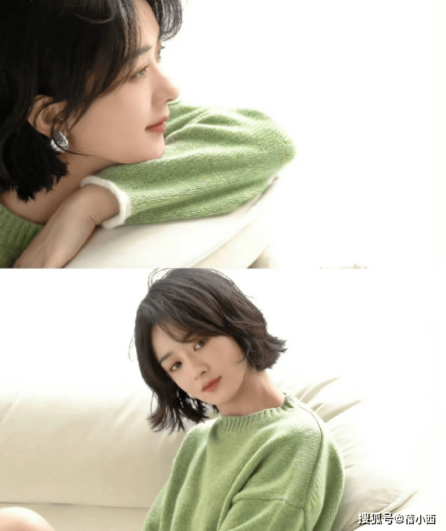 — 37岁赵丽颖短发新造型太成功!穿绿色毛衣时尚又减龄,看着像20岁 —