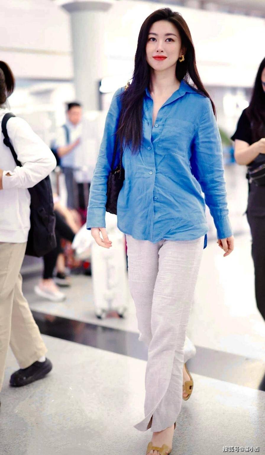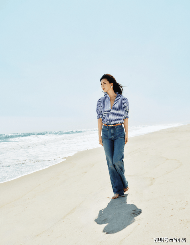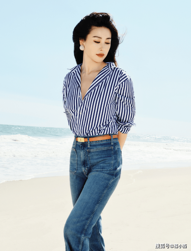— 40岁朱珠带火了一种春天简约穿搭:条纹衬衫+牛仔裤,洋气又减龄 —