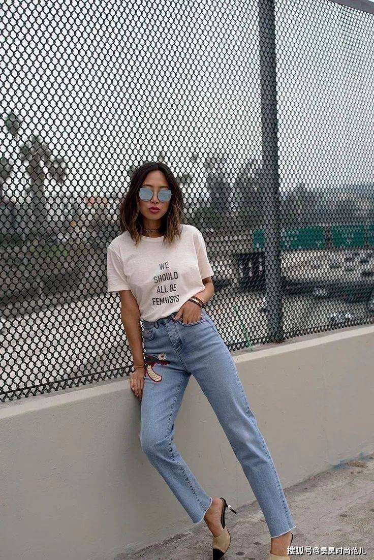 — T恤搭配牛仔裤,初夏的经典时髦穿搭,简单好搭又不容易出错 —