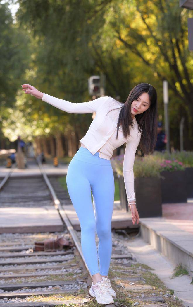 — 蓝色瑜伽裤,穿出青春穿出美,穿搭和身材都太迷人 —