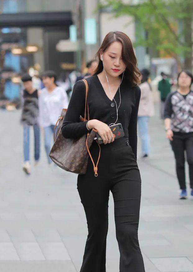 — 黑色V领针织衫配高腰阔腿裤,同色系叠穿搭配,尽显个人独特魅力 —