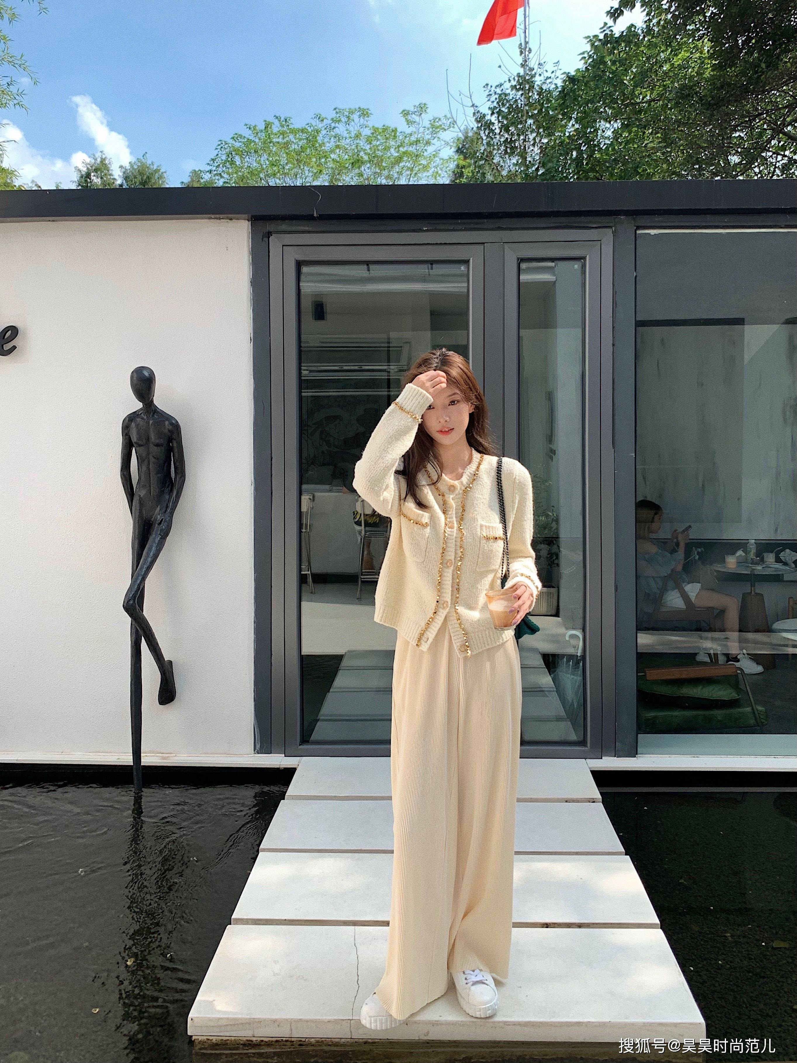 — 阔腿裤搭配什么上衣好看?针织开衫+阔腿裤,温柔时尚显气质 —