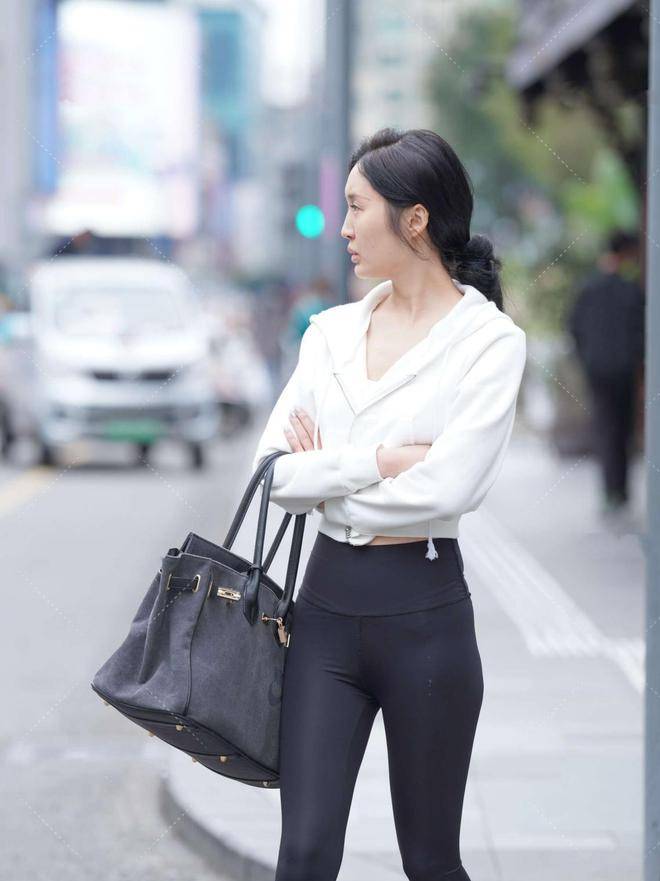 — 白色短款外套搭配黑色九分裤,青春时尚,减龄效果出众 —