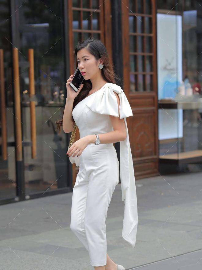 — 白色休闲连衣裤,斜肩设计精致时尚,搭配高跟鞋更显气场十足 —