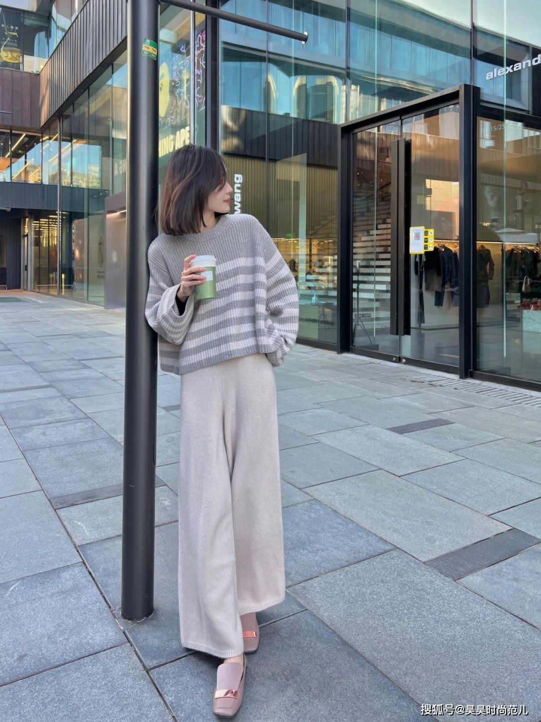 — 春日时尚穿搭,试试毛衣+阔腿裤,开春照着穿时髦又洋气 —