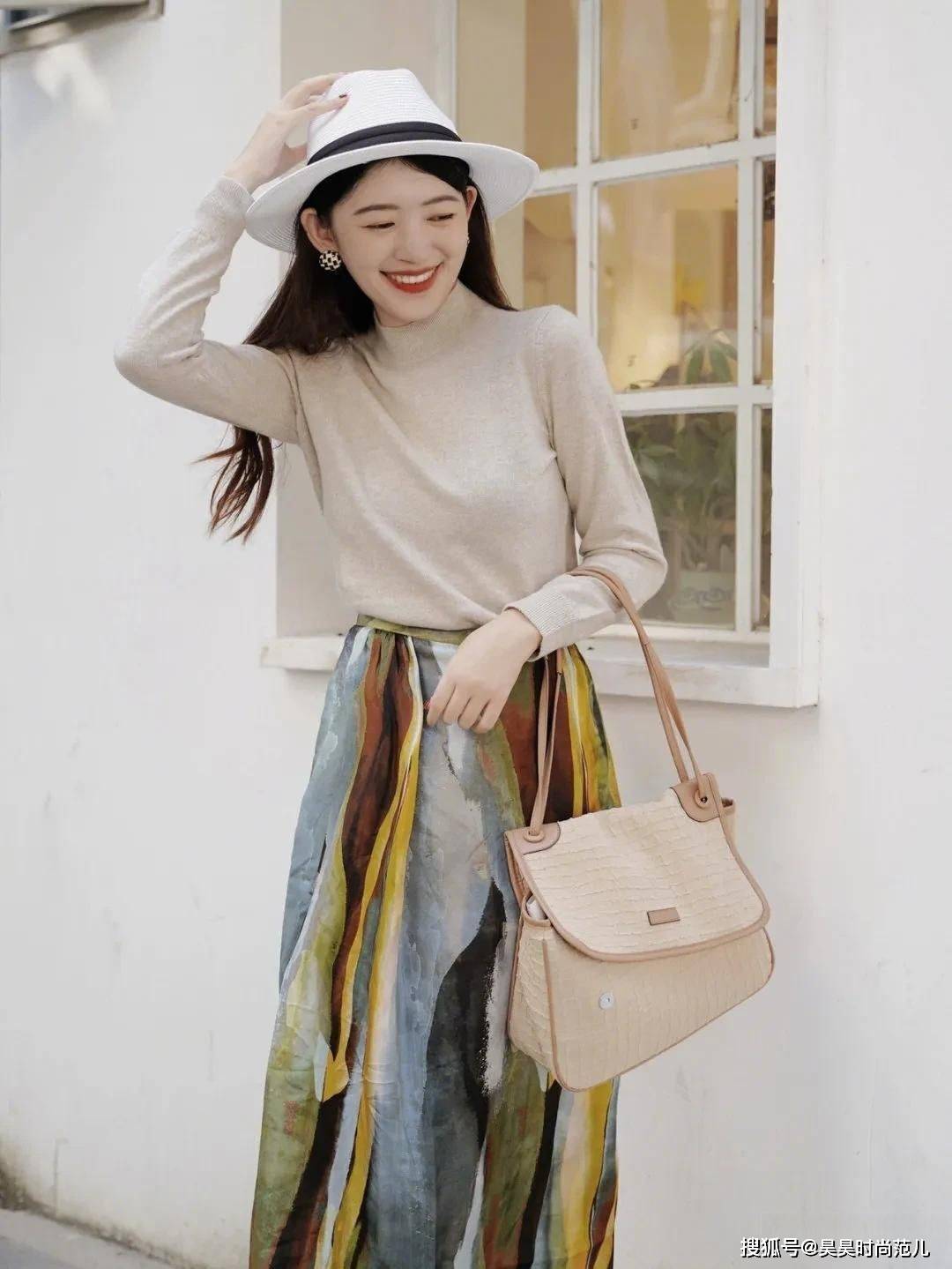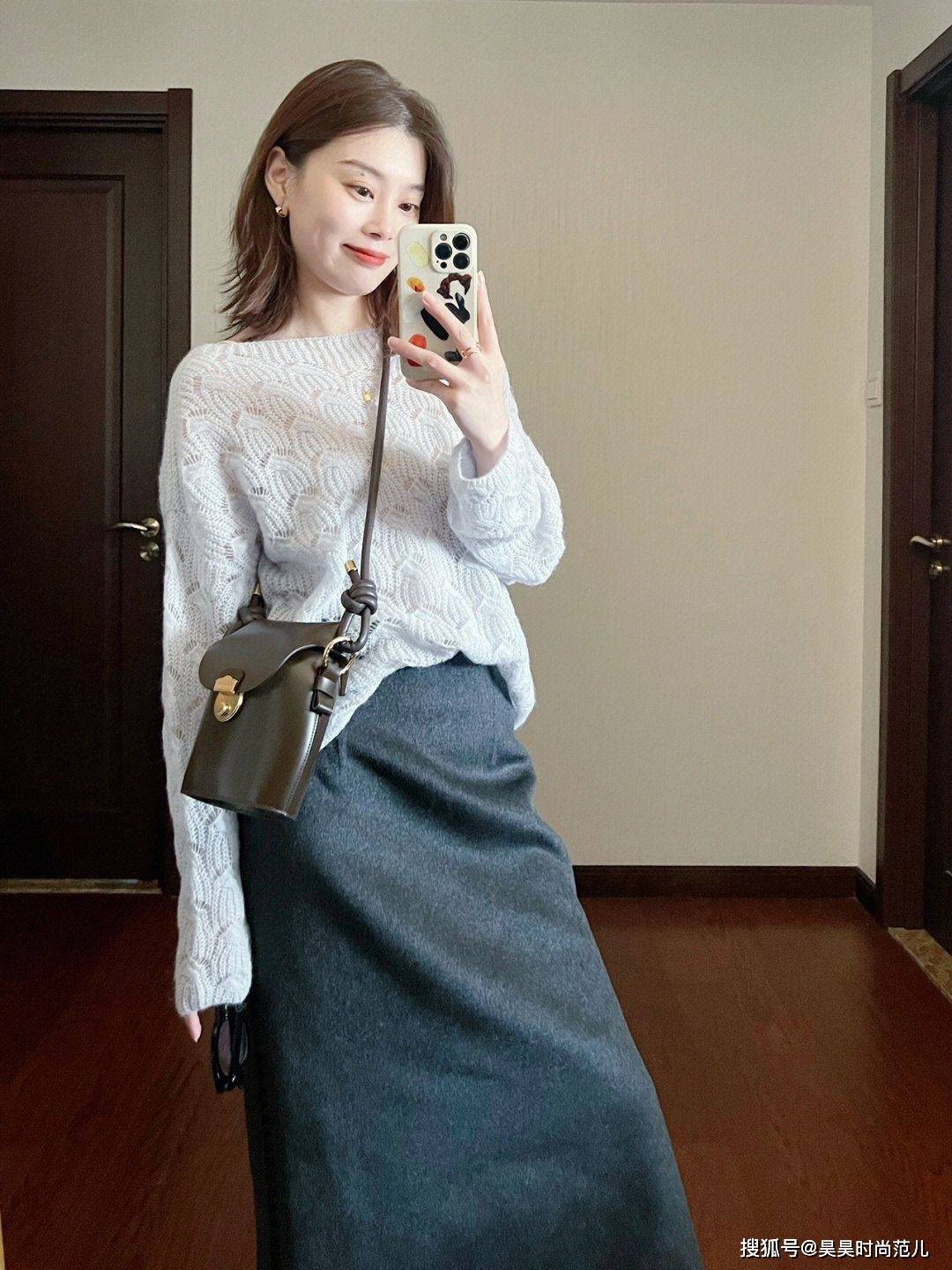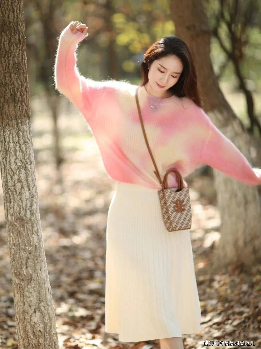 — 简单时尚的春日穿搭,还得是针织衫+裙子搭配,温柔优雅有气质 —
