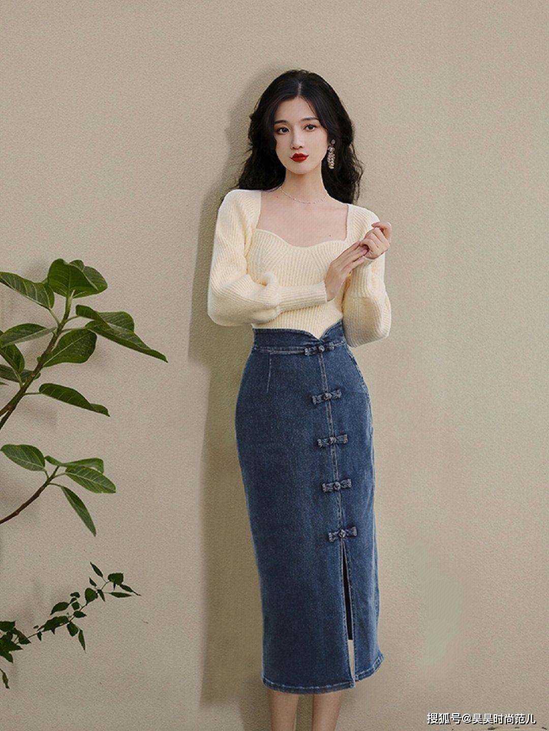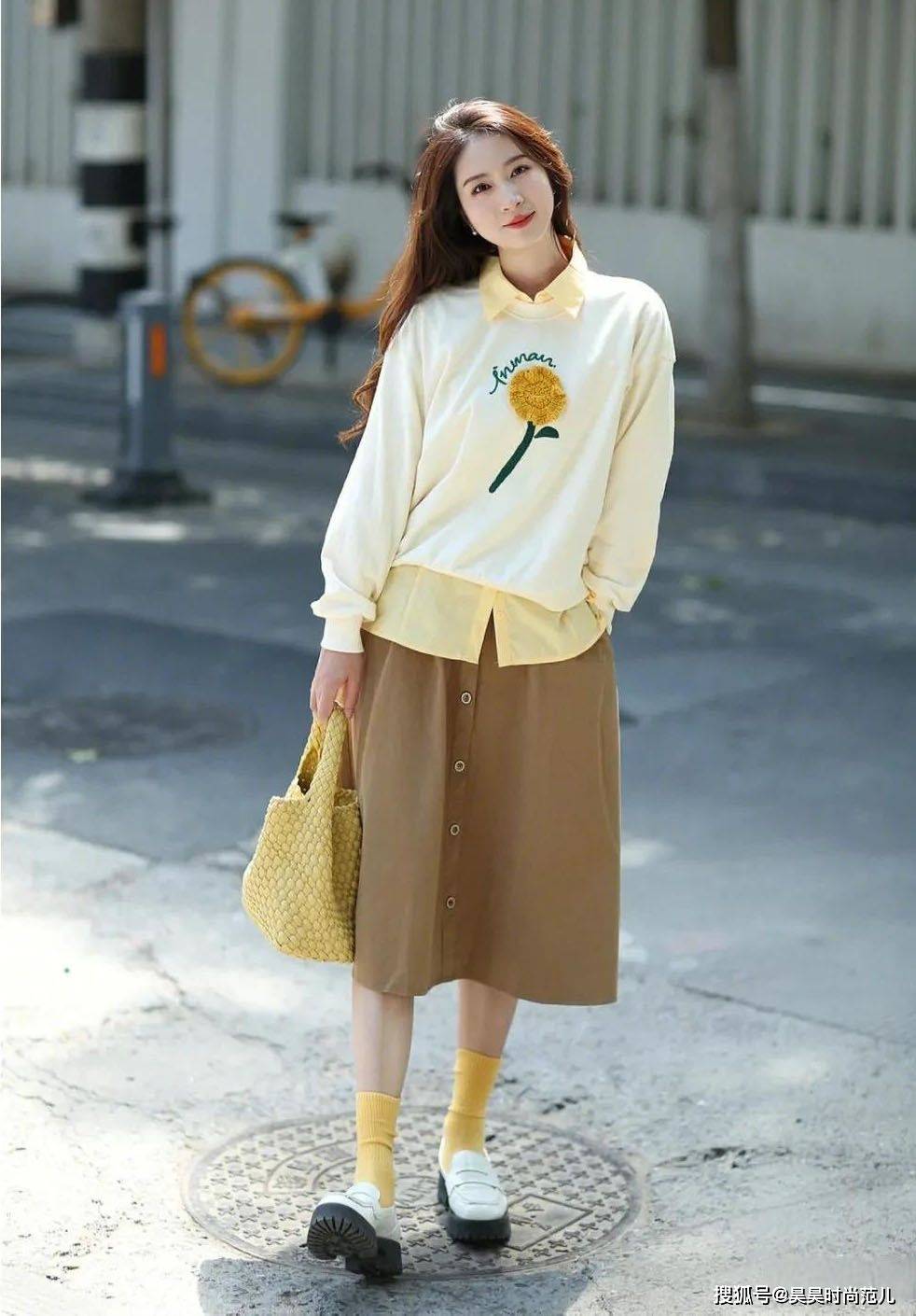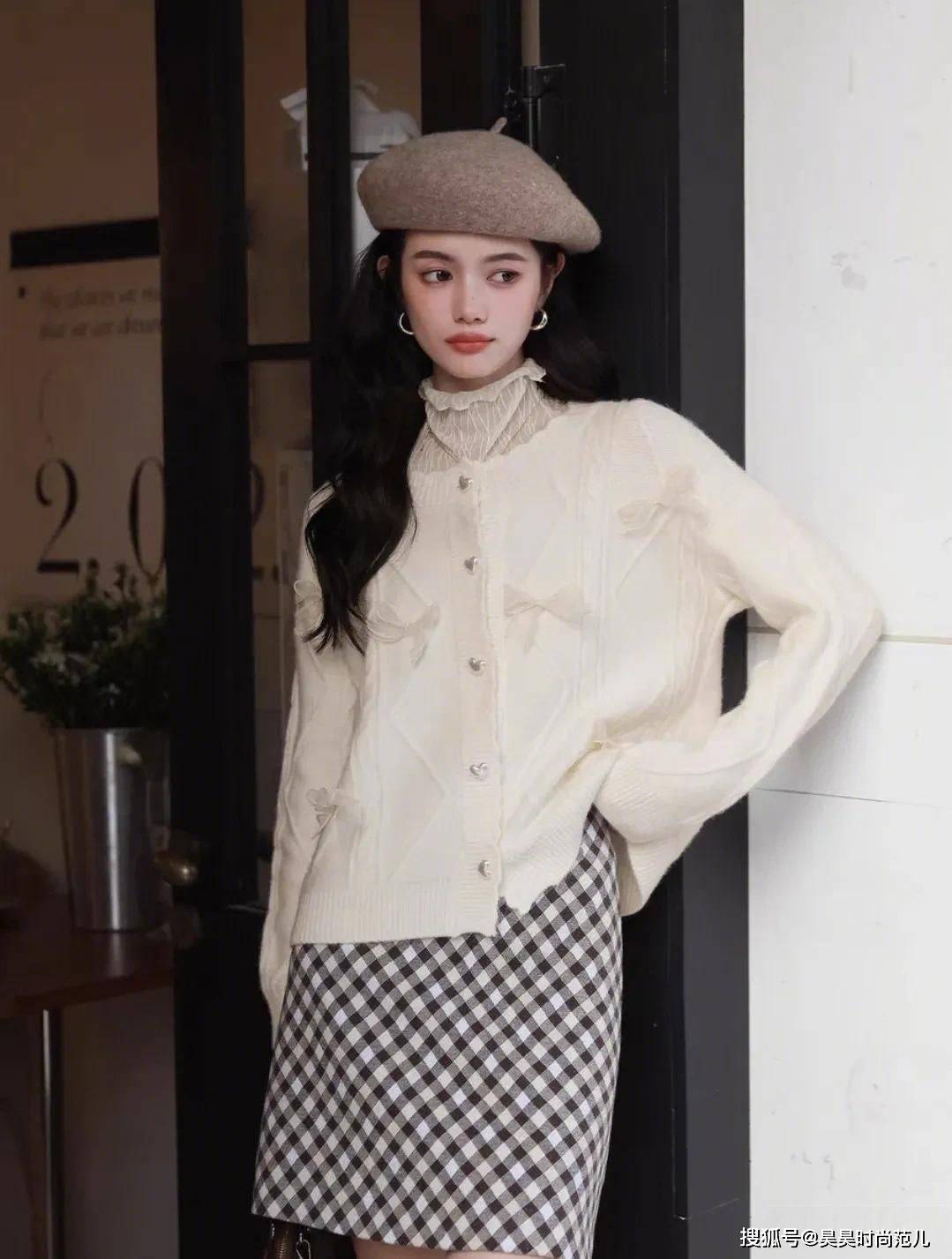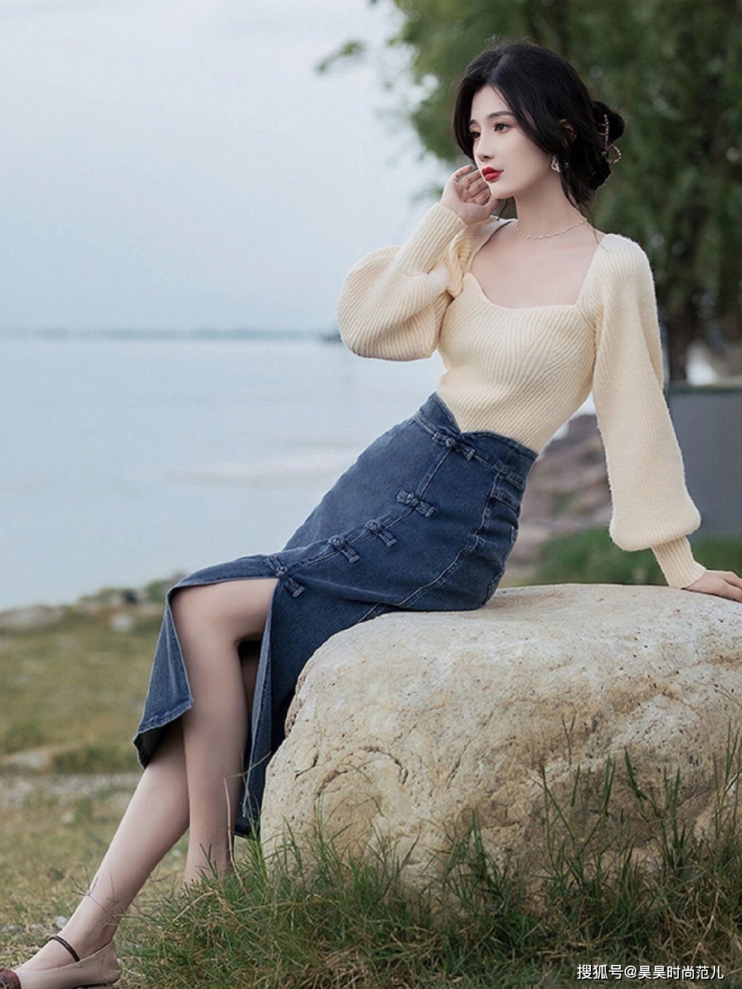 — 简单时尚的春日穿搭,还得是针织衫+裙子搭配,温柔优雅有气质 —