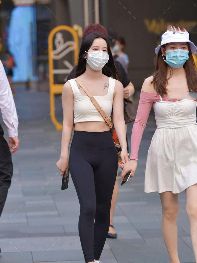 — 白色短款背心搭配黑色健美裤,简单大方,清新时尚,凸显独特气质 —