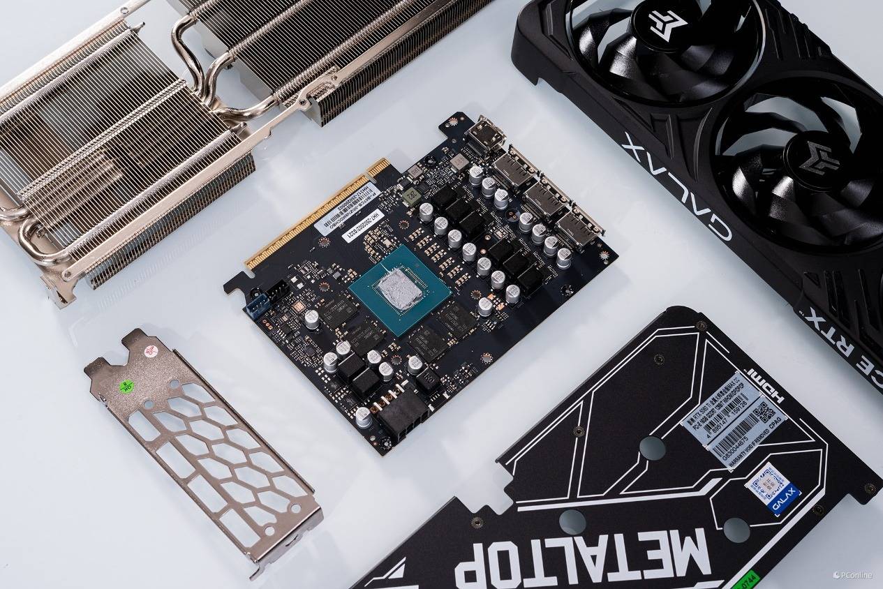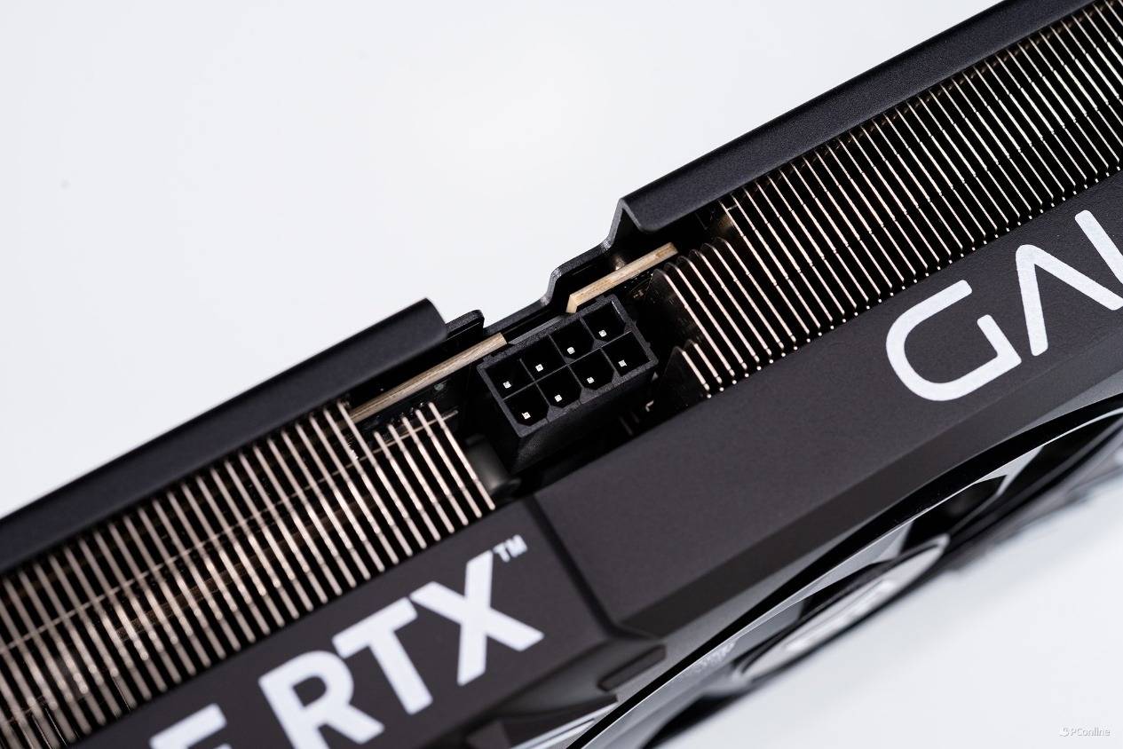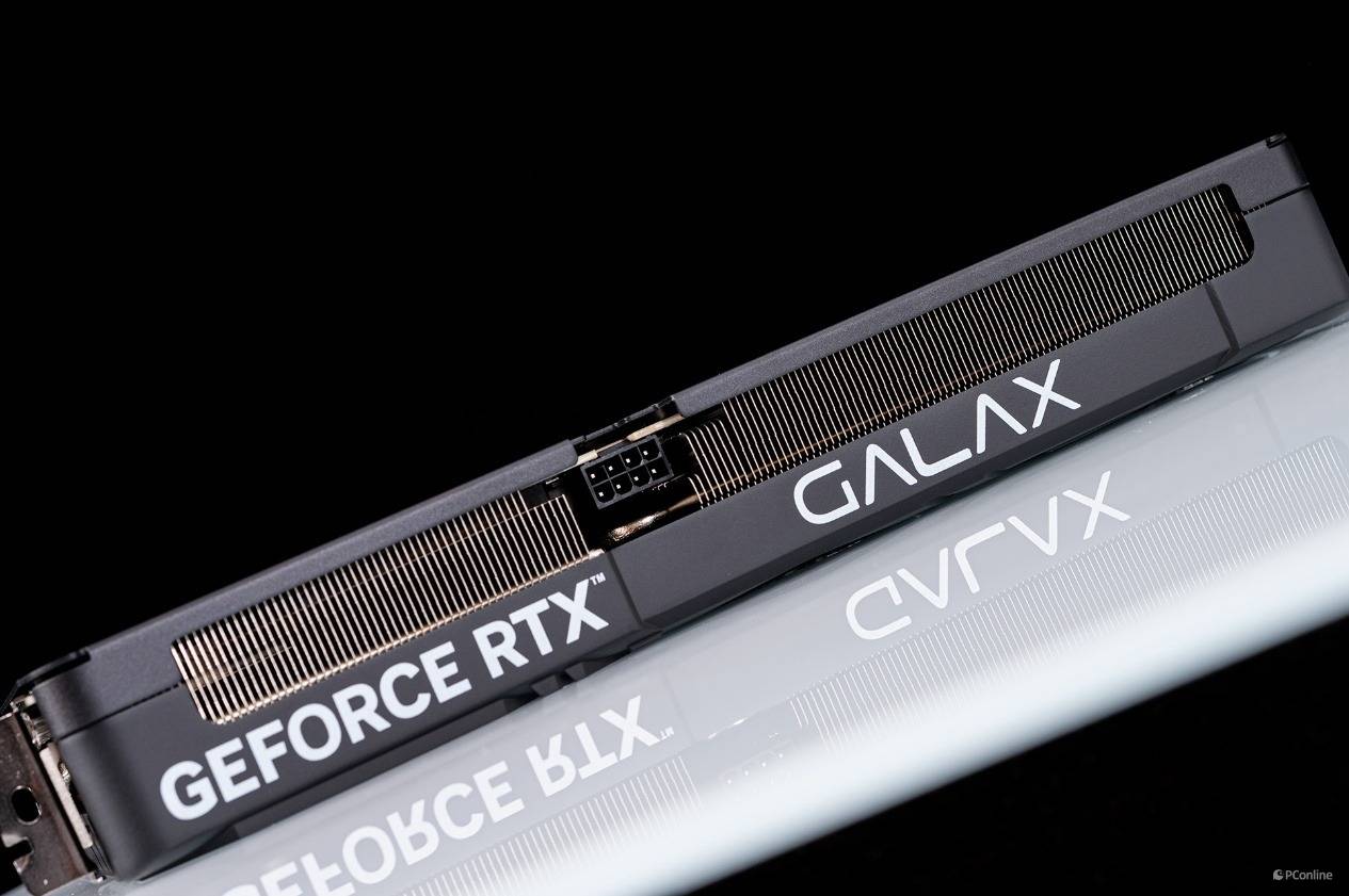 再看显卡的顶部,分别是“GEFORCE RTX”以及“GALAX”的标识,给单调的侧边增添了装饰效果。显卡横装时也能让人一眼看出这是来自影驰的NVIDIA显卡。