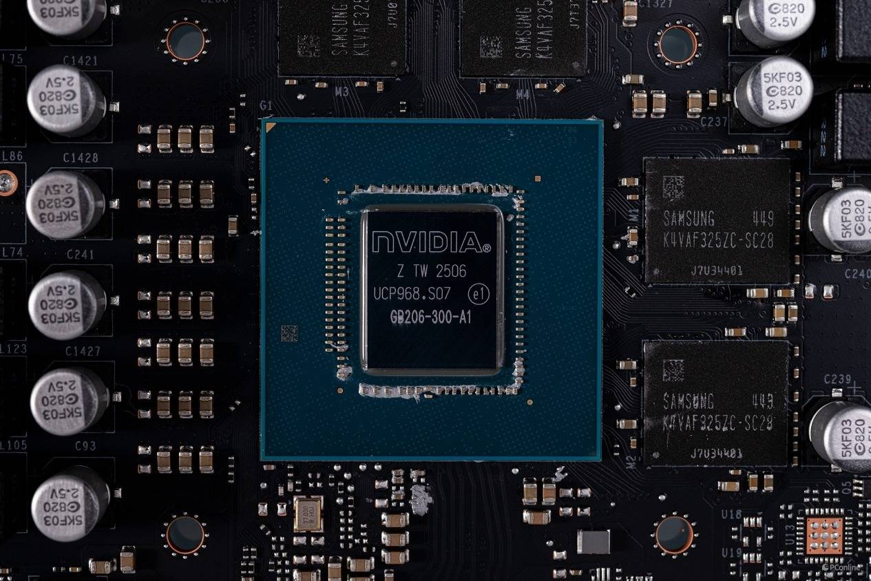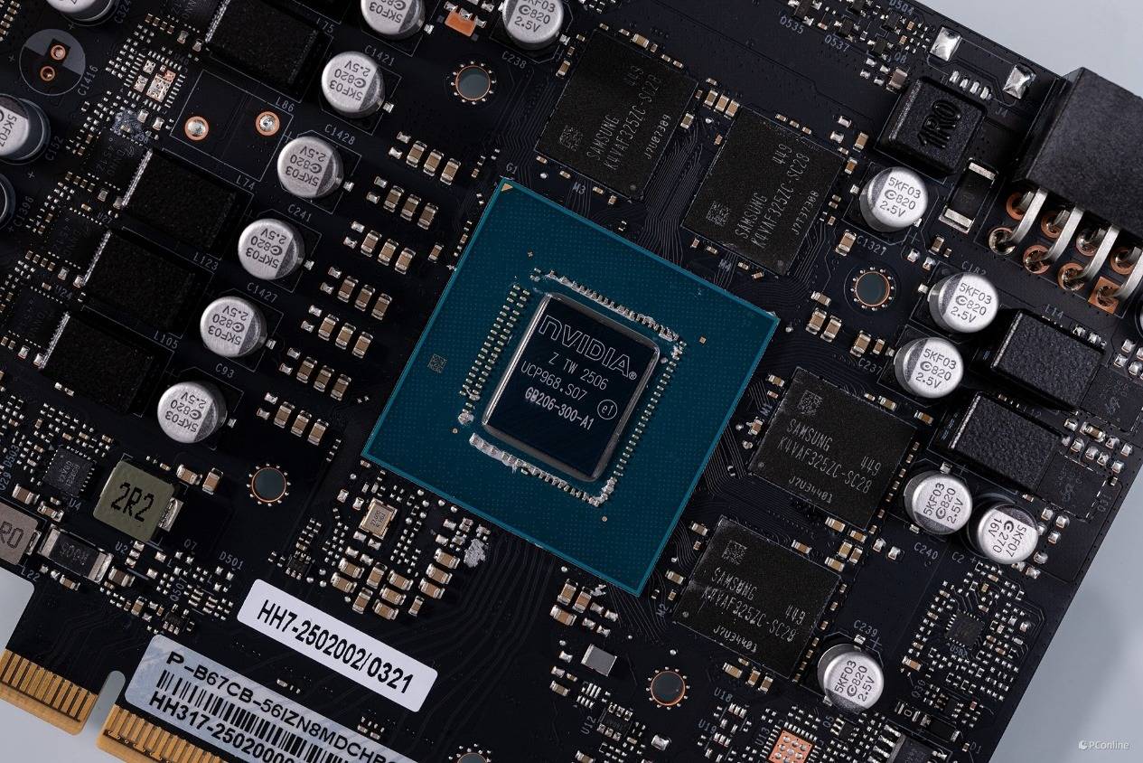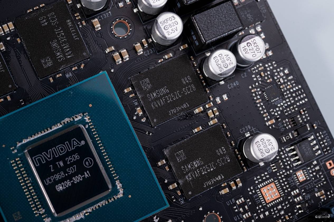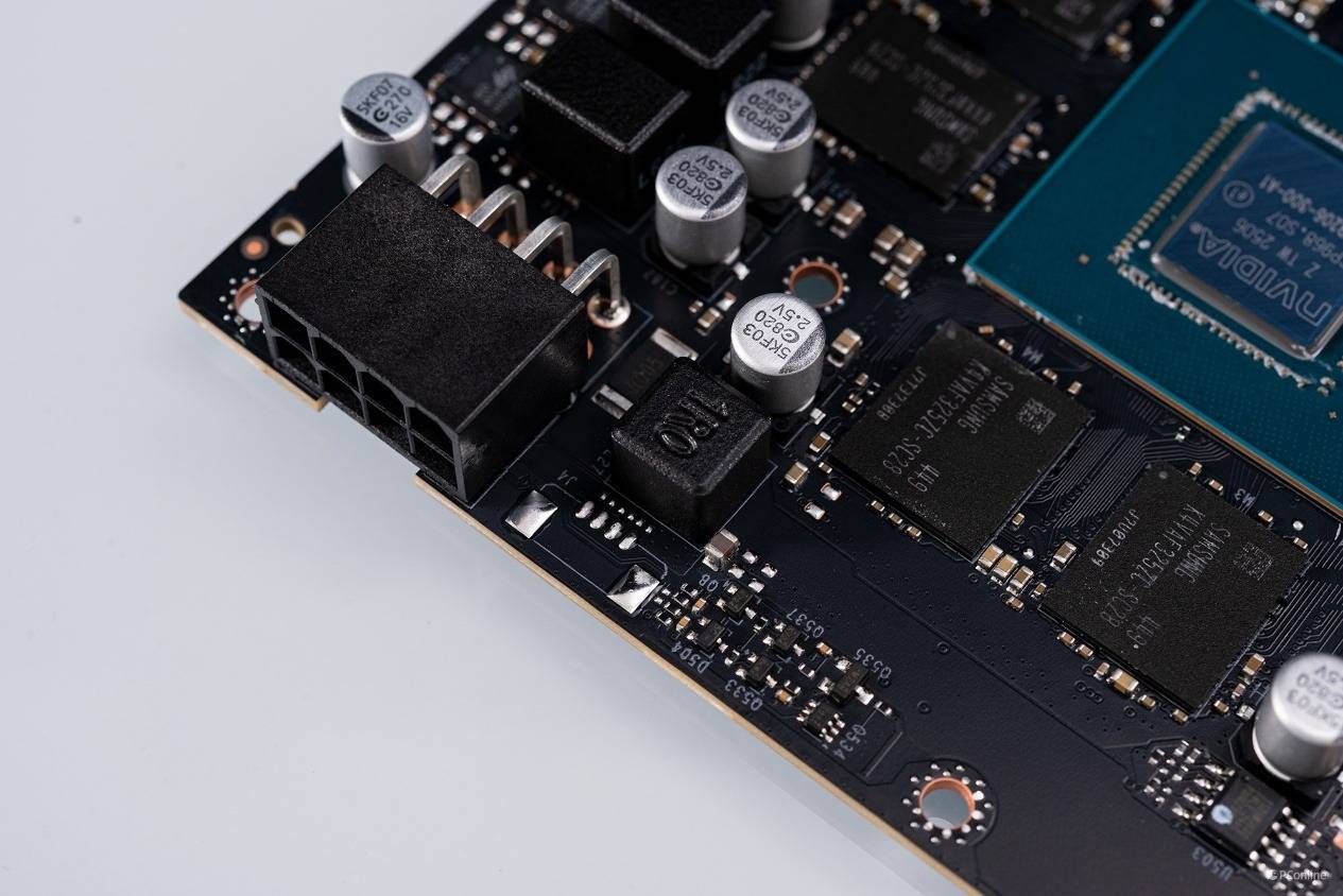 显存型号为K4VAF325ZC-SC28,内部是512M×32的架构,根据其型号后缀“SC-28”也可以知道,这些显存的数据频率可达28Gbps。
