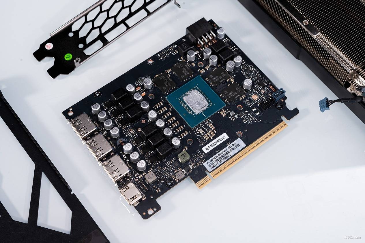 PCB背面就比较简洁了,不过与一般显卡不同,仔细看可以看到其背面还有显存芯片,后续我们会详细介绍。