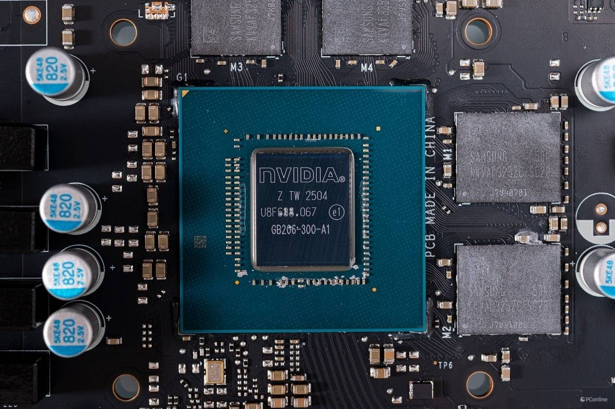 显存型号为K4VAF325ZC-SC28,内部是512M×32的架构,数据频率可达28Gbps。