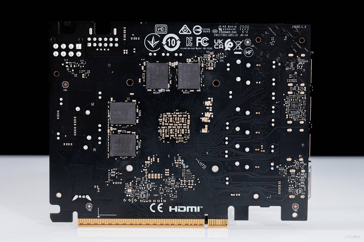 首先看看显卡的PCB设计。有一说一,微星GeForce RTX 5060 Ti INSPIRE 2X 硬派师16GB的PCB可以用小巧玲珑来形容。