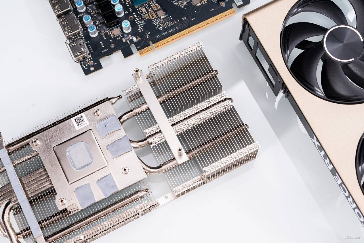下面看看这款显卡的散热设计,整张显卡的散热系统还是相当有份量的,整个散热系统可分为三部分,分别是散热器主体、金属背板以及主动散热风扇。