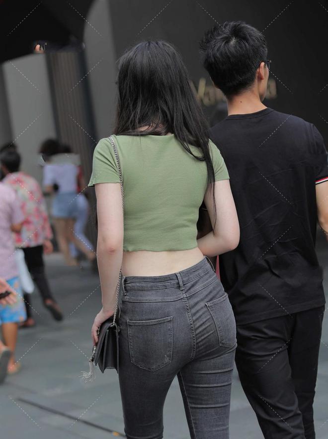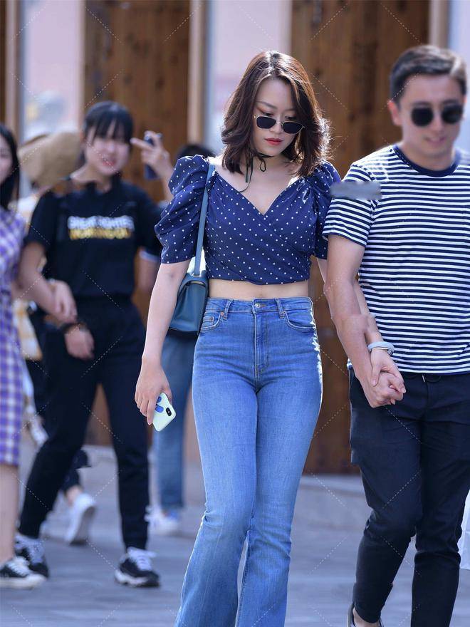 — 短款上衣搭配高腰牛仔裤,凸显小蛮腰的同时,又能调整身材比例 —