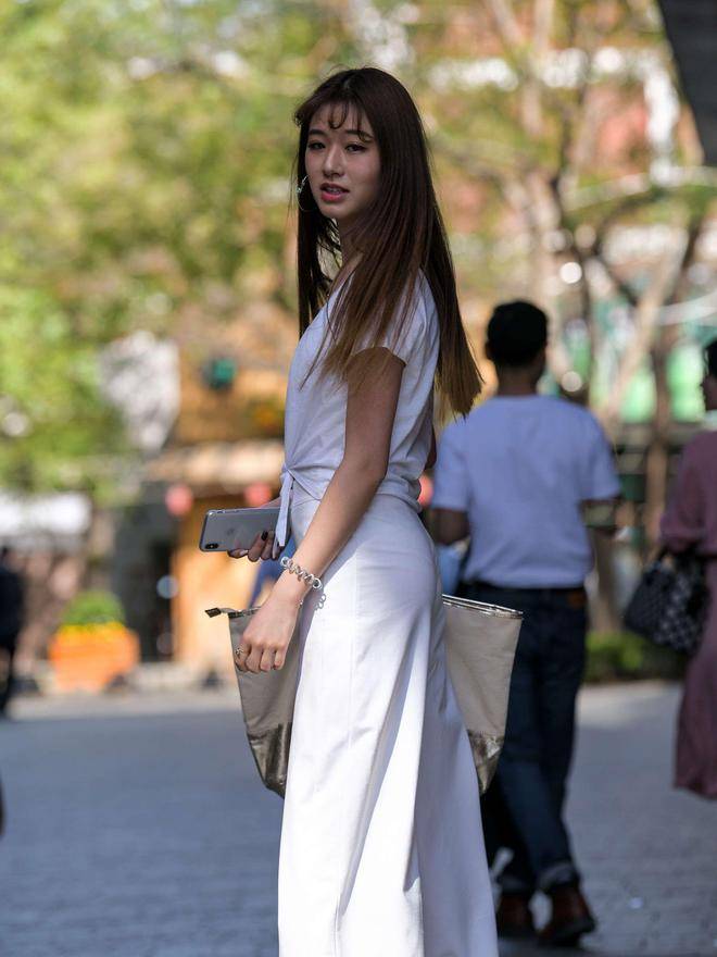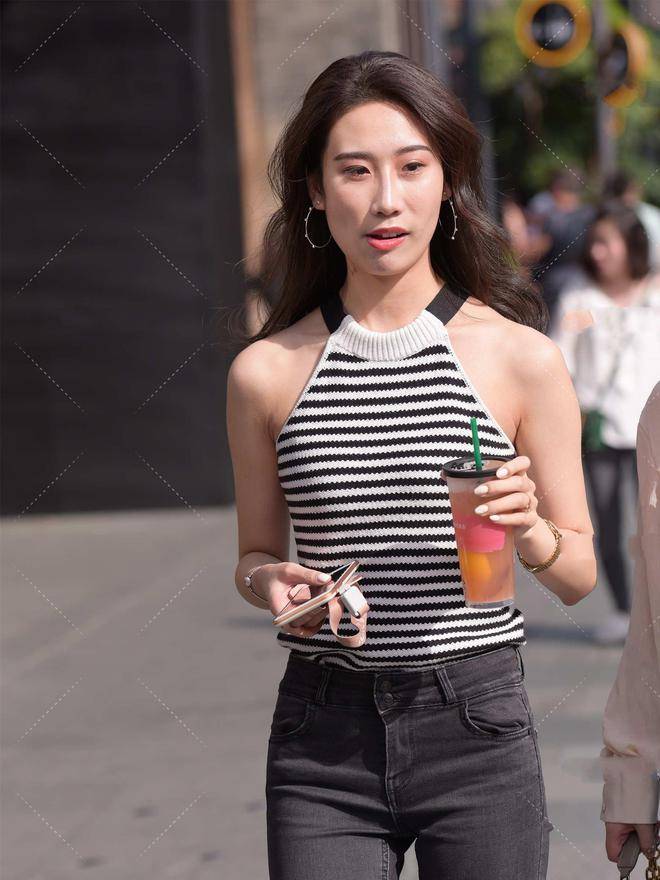 — 短款白色上衣,搭配高腰蓝色牛仔裤,简单的搭配,丰富的层次 —
