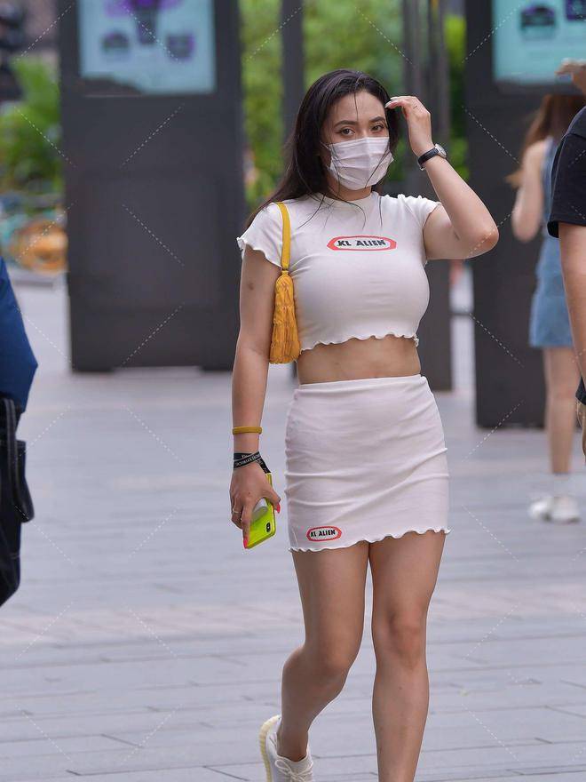 — 白色小款T恤,配上动感蓝色,展现清新温婉的舒爽穿搭 —