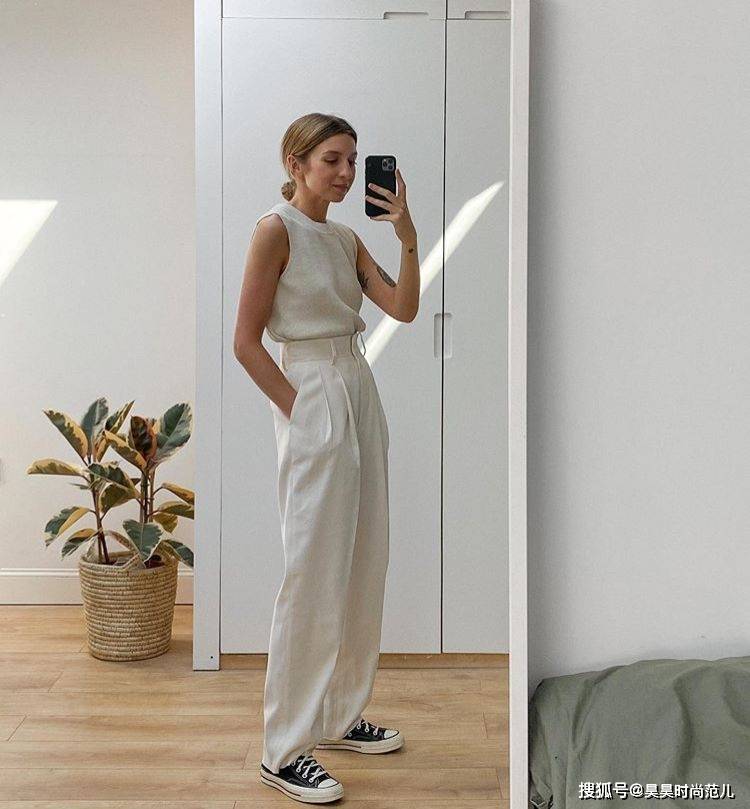 — 阔腿裤夏天穿搭照样很有范儿,搭配T恤或是衬衫,皆可时髦显气质 —