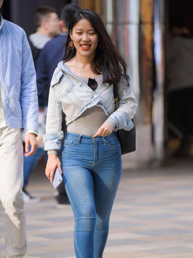 — 牛仔裤不只可以搭配白色T恤,和绿色上衣的组合,也是很清新淡雅 —