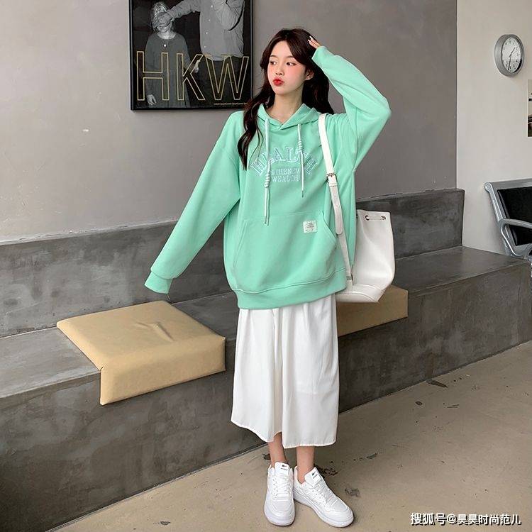 — 春天来了,卫衣+裙子的简单穿搭示范,大方舒适又显气质 —