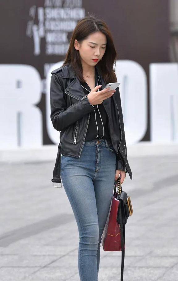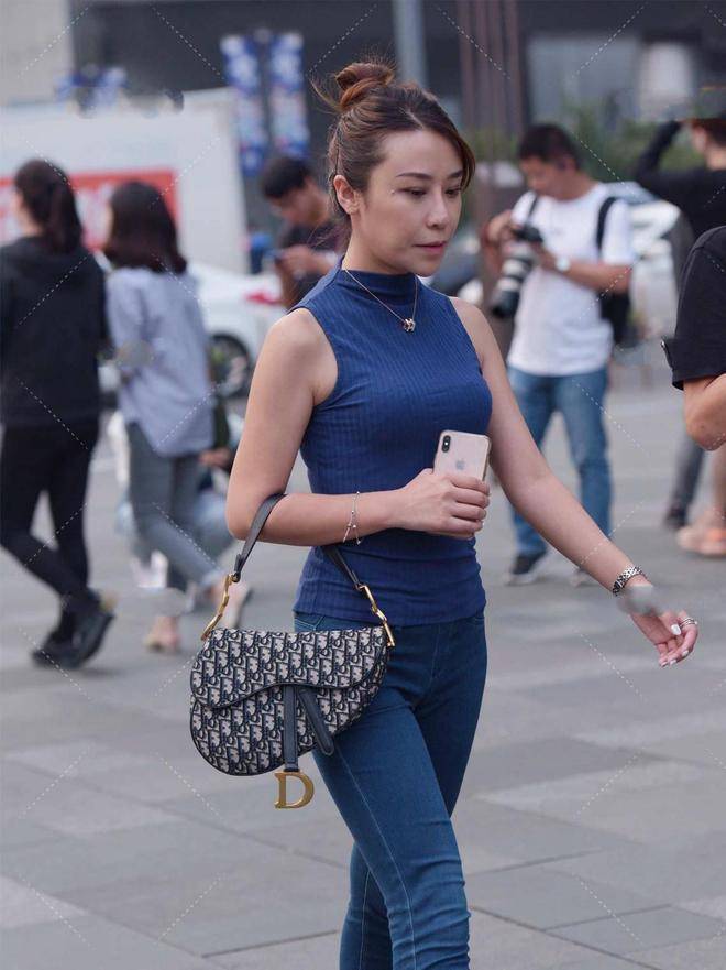 — 街拍:深蓝色穿搭成熟知性,配上个性包包,高级又时尚 —