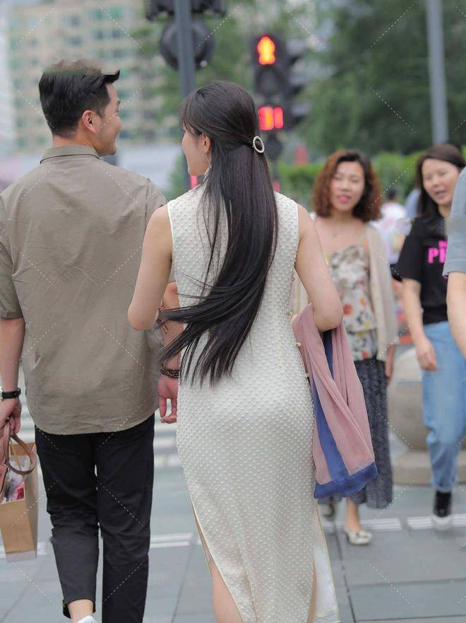 — 街拍:清新自然的浅绿,搭配简单大方的白色,更显青春感 —