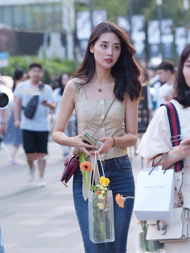 - 44岁张萌太丰满,穿吊带衫都兜不住好身材,我感慨资本果然会选人