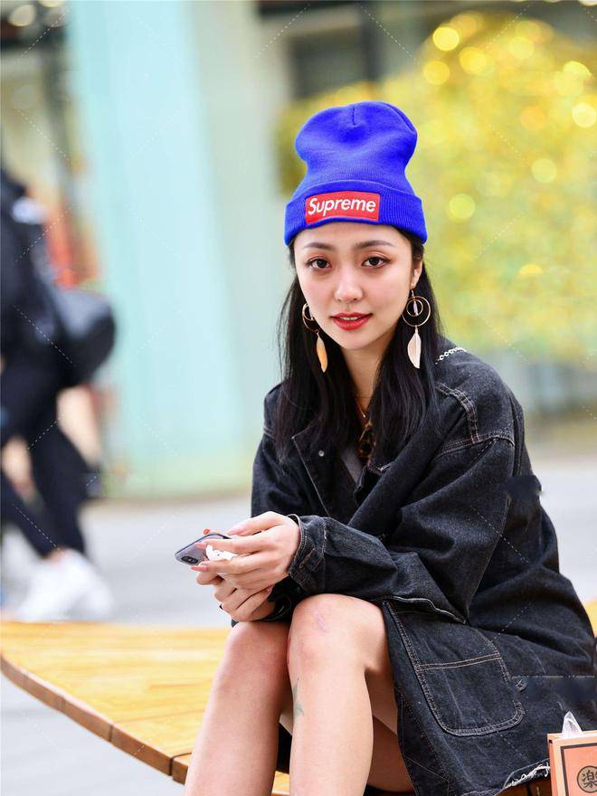 — 街拍:牛仔外套混搭老爹鞋,搭配针织帽,穿法潮流又帅气 —