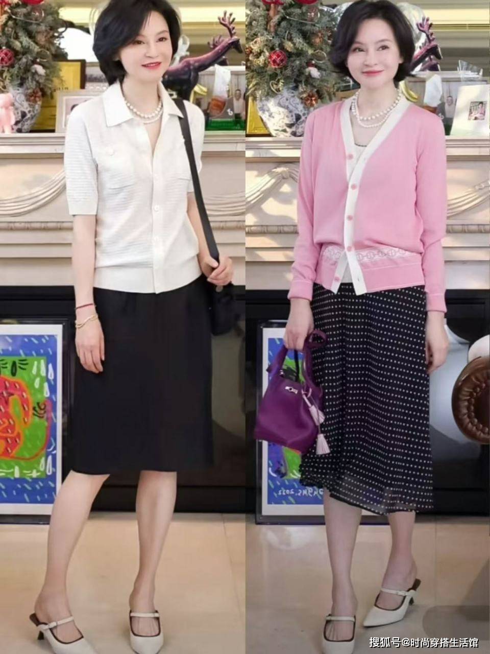 - 郭晶晶与闺蜜在豪宅里聚会!穿V领衬衫+针织衫,高级、显贵又松弛