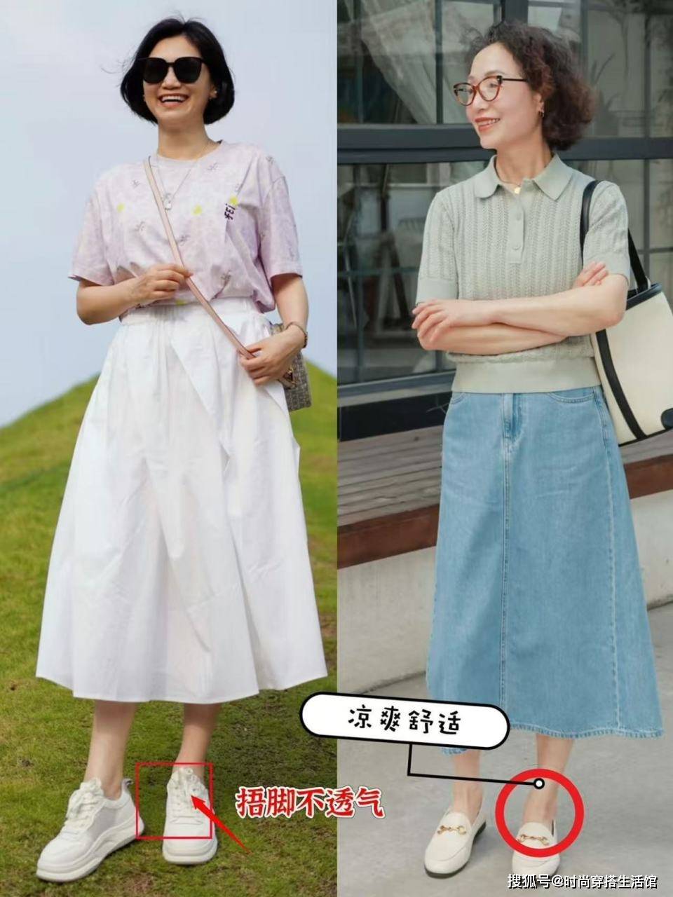 — 中老年女人穿裙子时,尽量少配凉鞋、运动鞋,换成这3双会更年轻 —