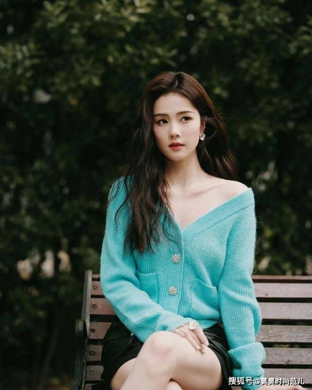 — 白鹿身穿青色针织外套+黑色短裙,温柔减龄有气质,简直不要太美 —
