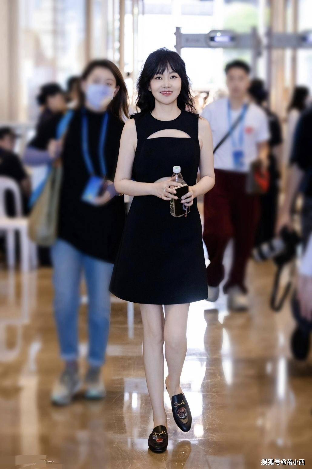 — 闫妮看不出有50岁,穿衬衫+短裙像小姑娘,五官和身材太抗打了 —
