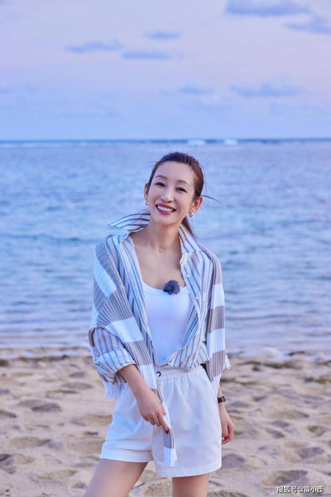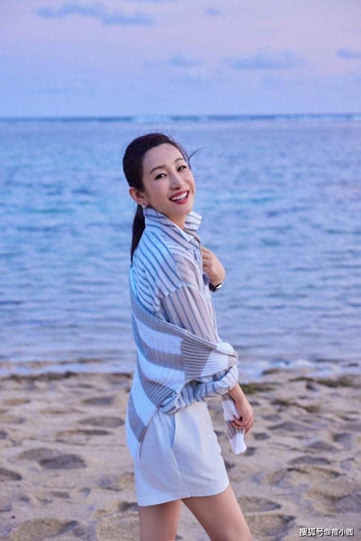 — 秦海璐海边度假!穿条纹衫+短裤嫩如少女,一点看不出46岁 —