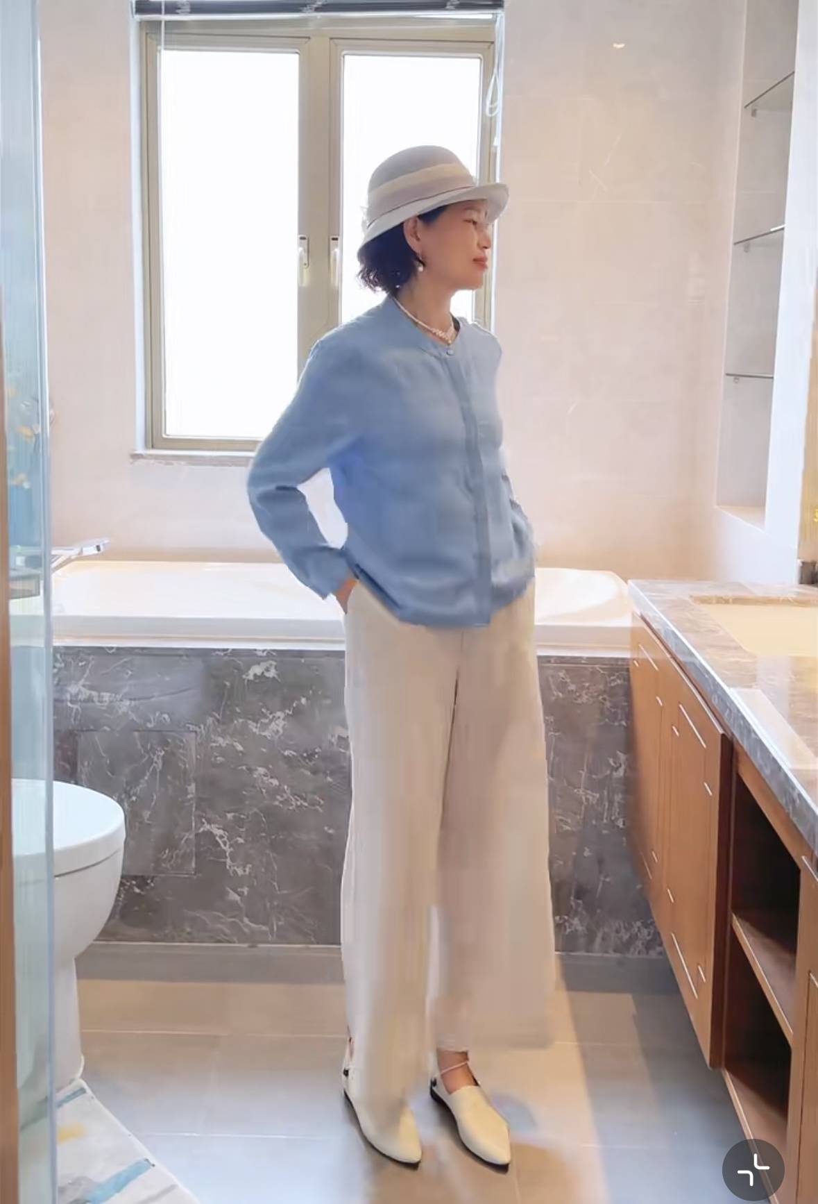 - 郭晶晶与闺蜜在豪宅里聚会!穿V领衬衫+针织衫,高级、显贵又松弛