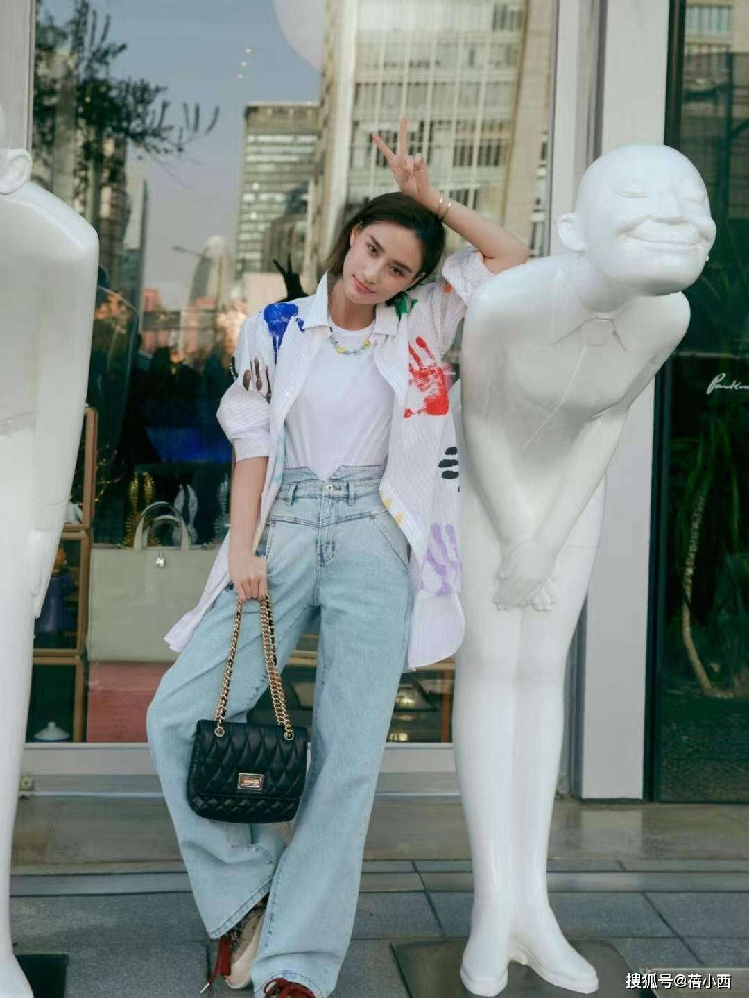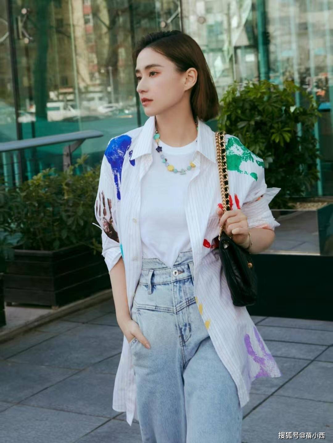 - 郭晶晶与闺蜜在豪宅里聚会!穿V领衬衫+针织衫,高级、显贵又松弛
