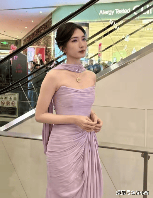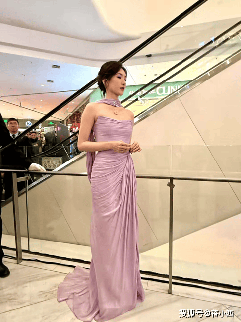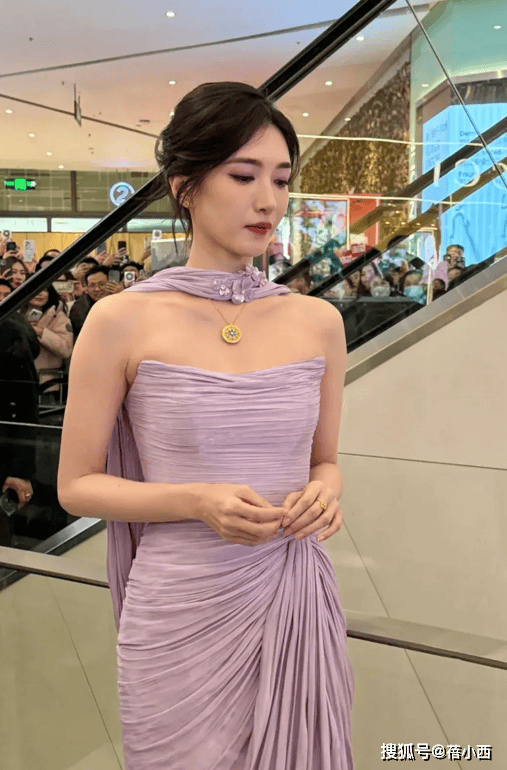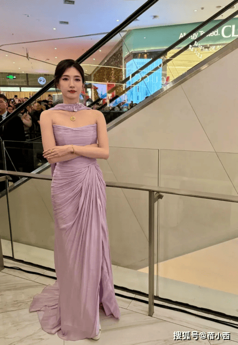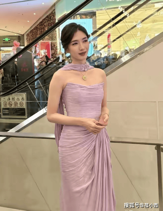 — 被38岁江疏影惊艳了!穿紫色连衣裙太有气质,超绝冷白皮更抢镜 —